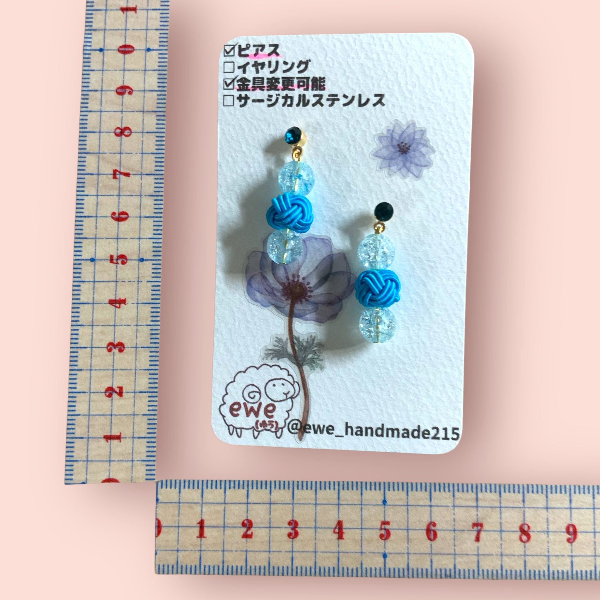 ピアス 水引き 水色たまたま ビーズ