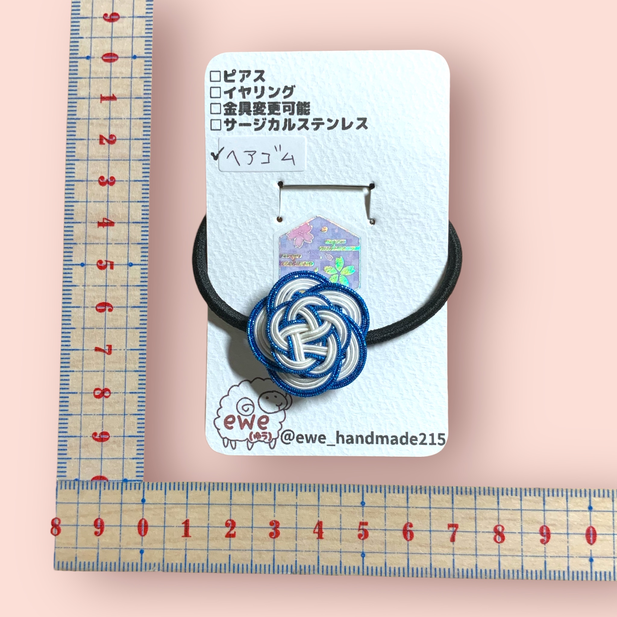 ヘアゴム  梅 大1  小1  ラメ入り青×白