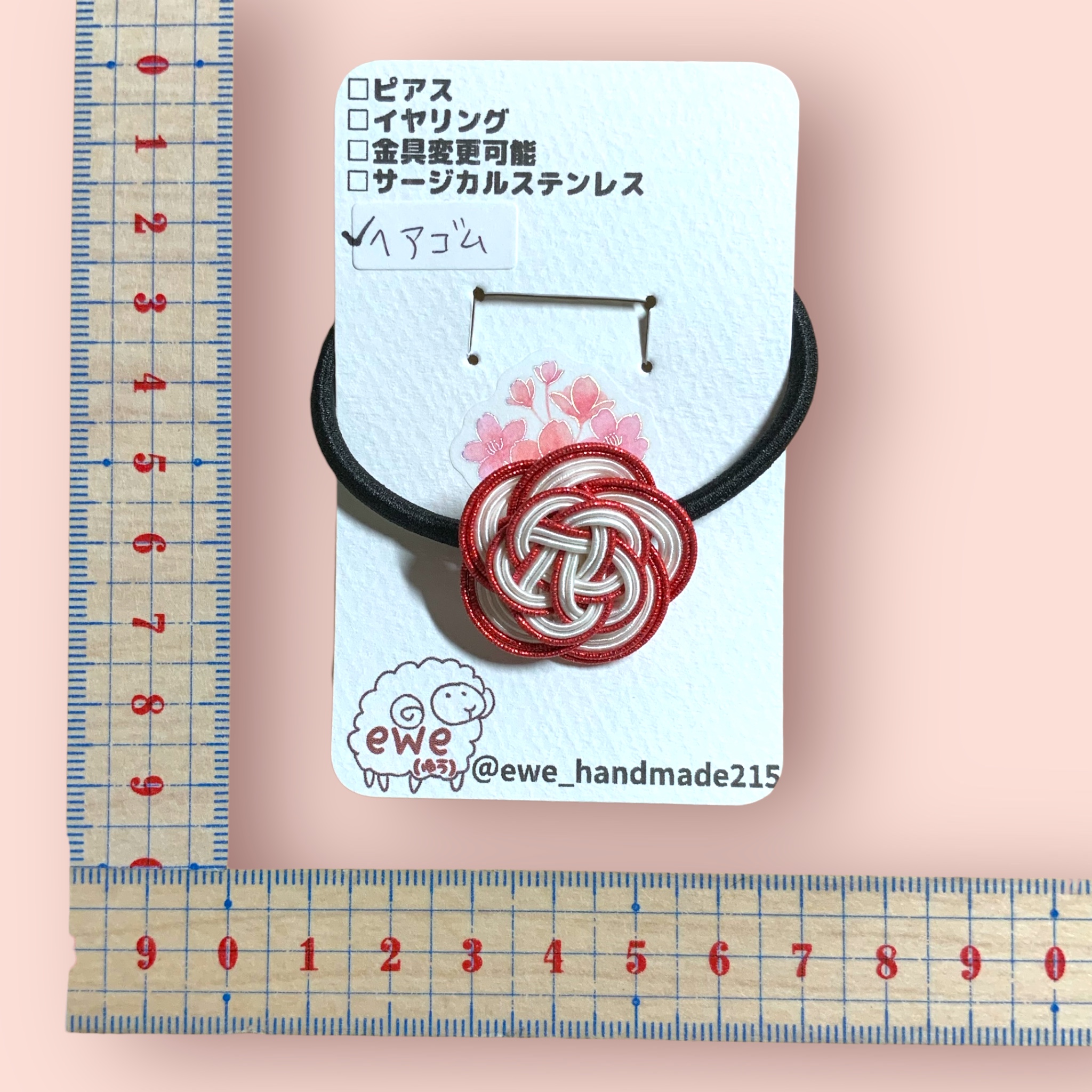 ヘアゴム 梅 大1 小1 ラメ入り赤×白