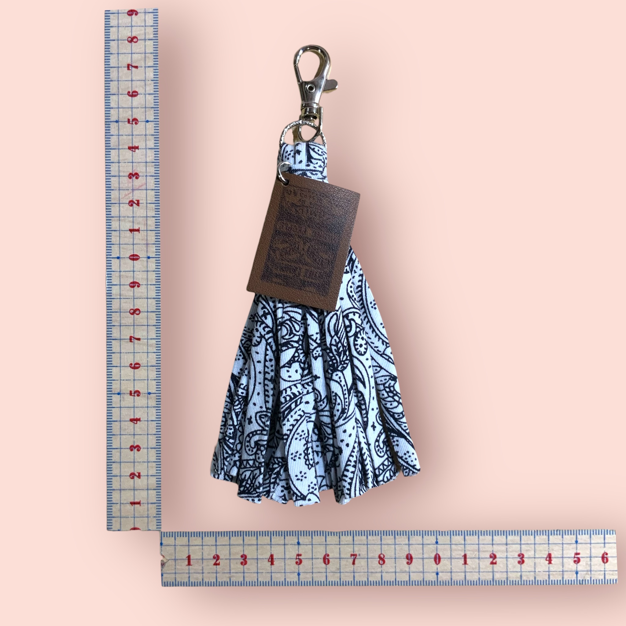 キーホルダー  ヤーンタッセル×革タグ