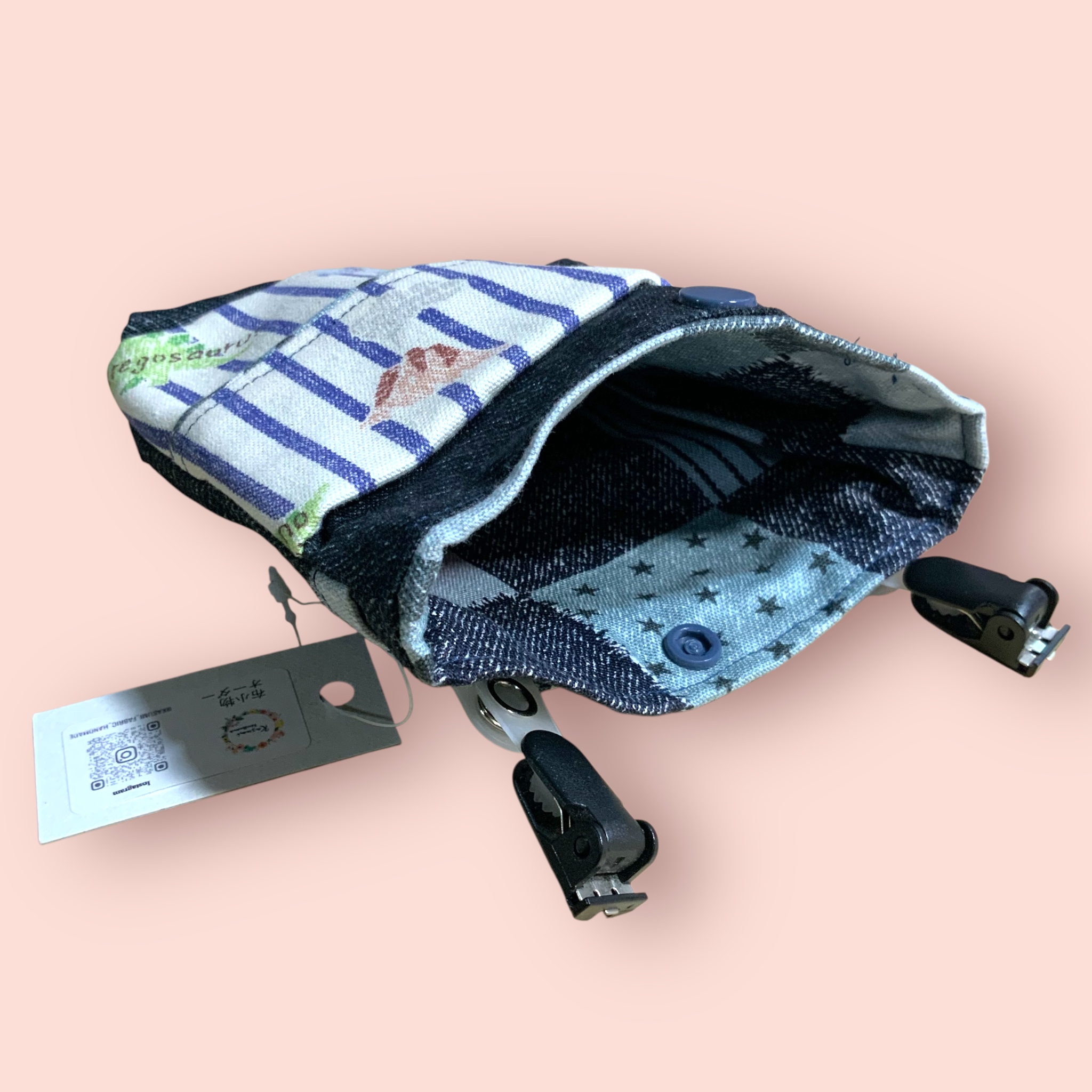 フタ無し移動ポケット ストライプ恐竜柄