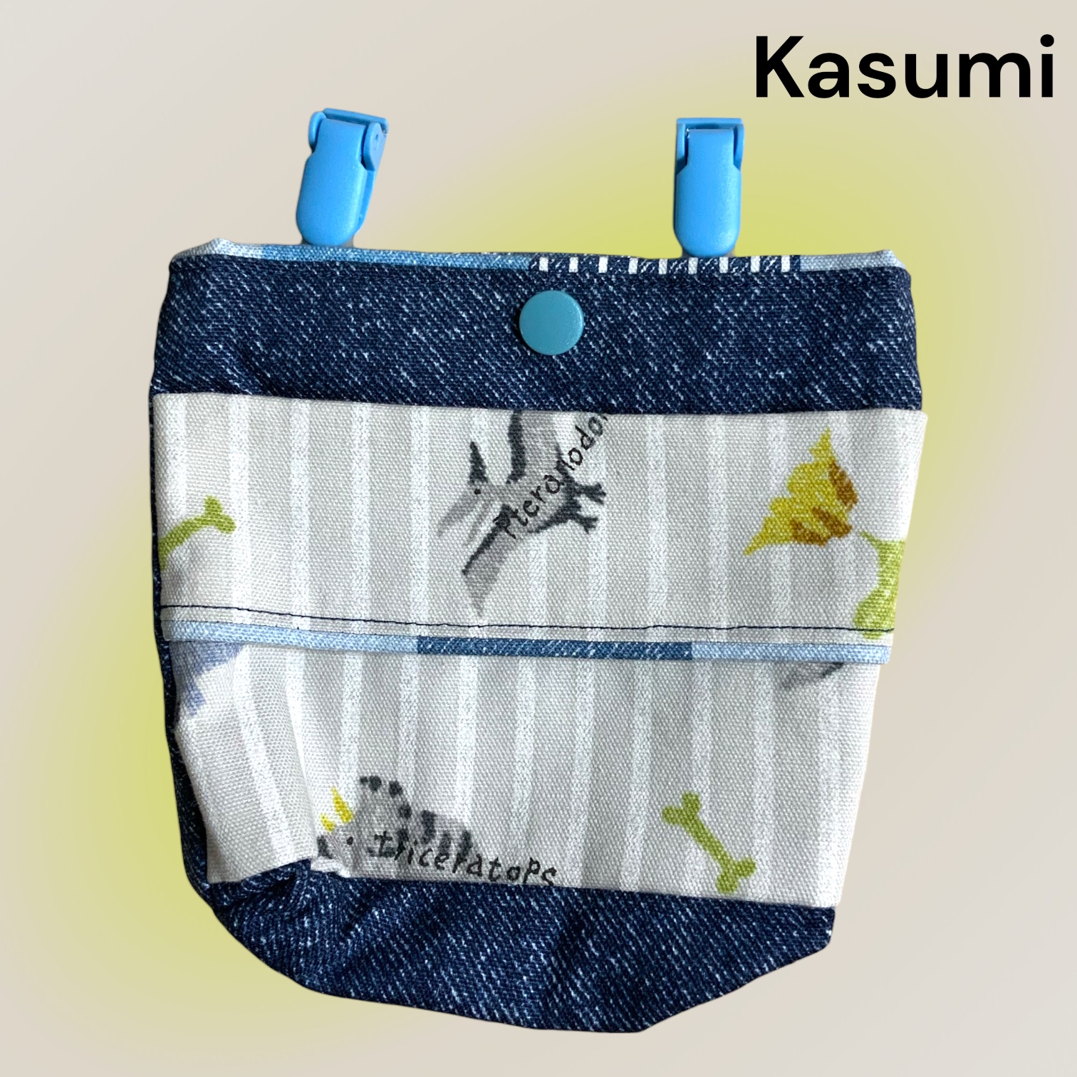 フタ無し移動ポケット ストライプ恐竜柄