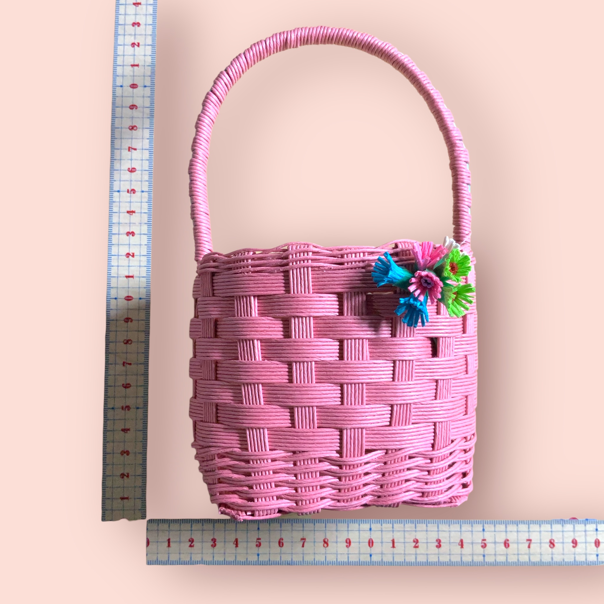 ミニカゴ バック  くすみピンク  お花付