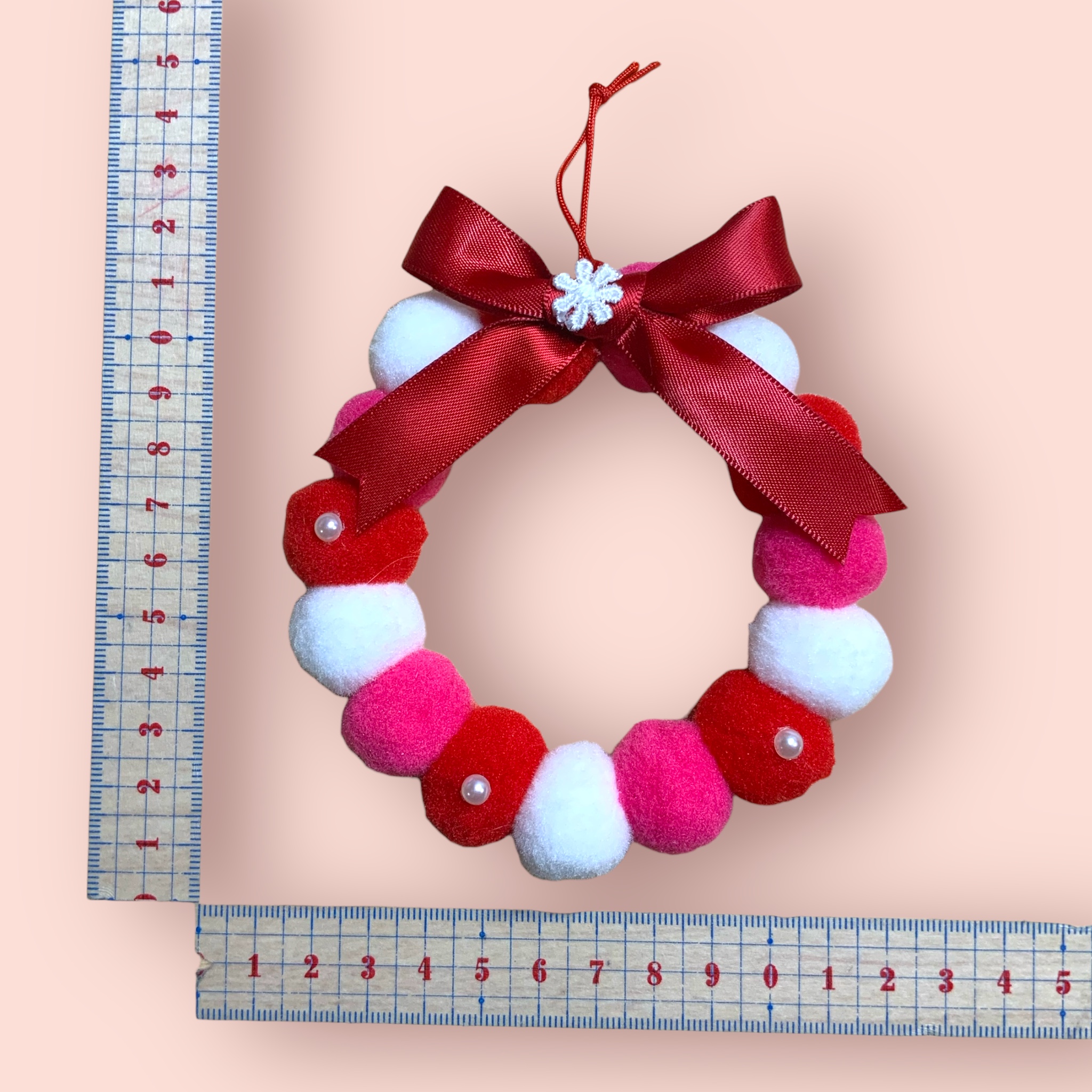 フェルトボールリース 赤系 赤リボン レースお花