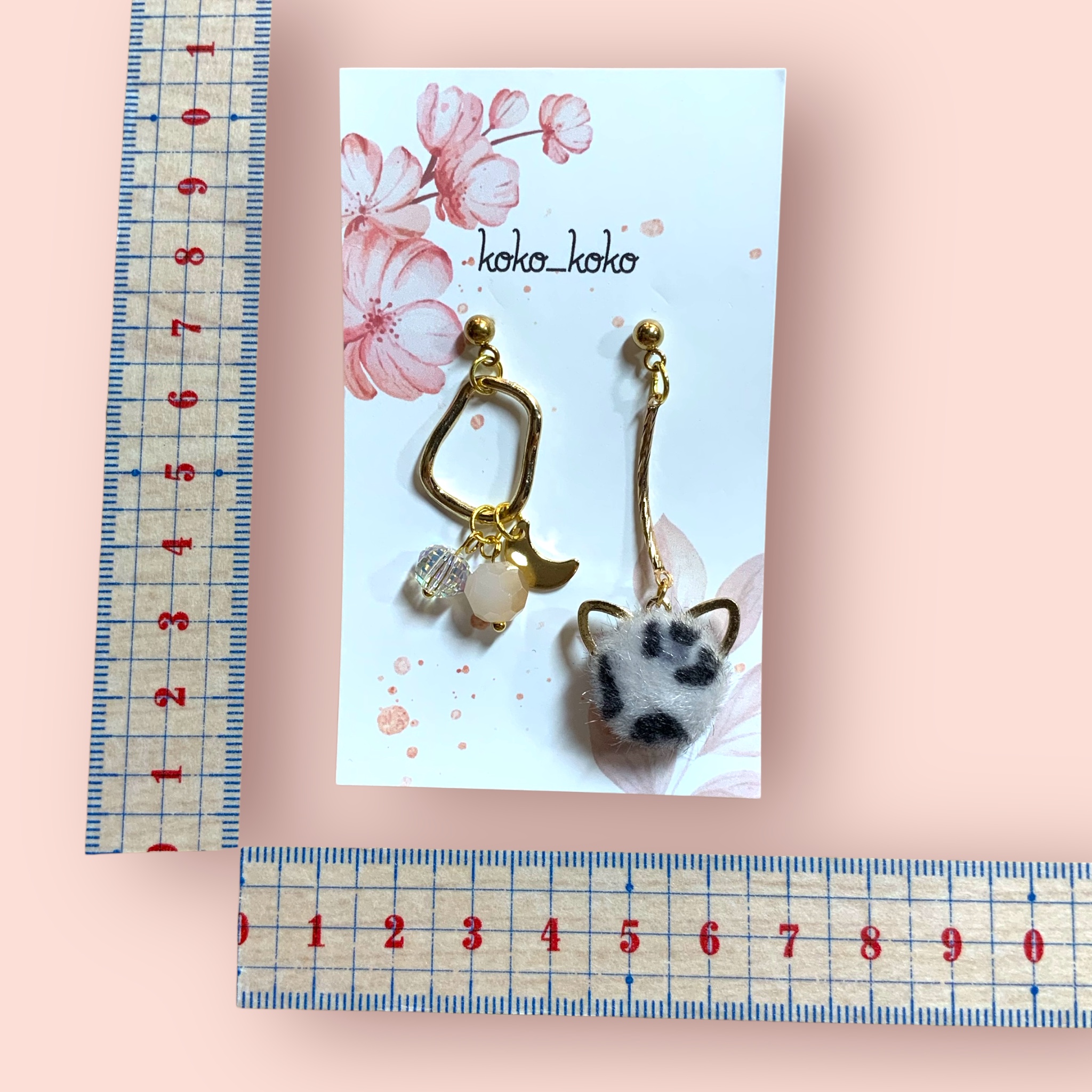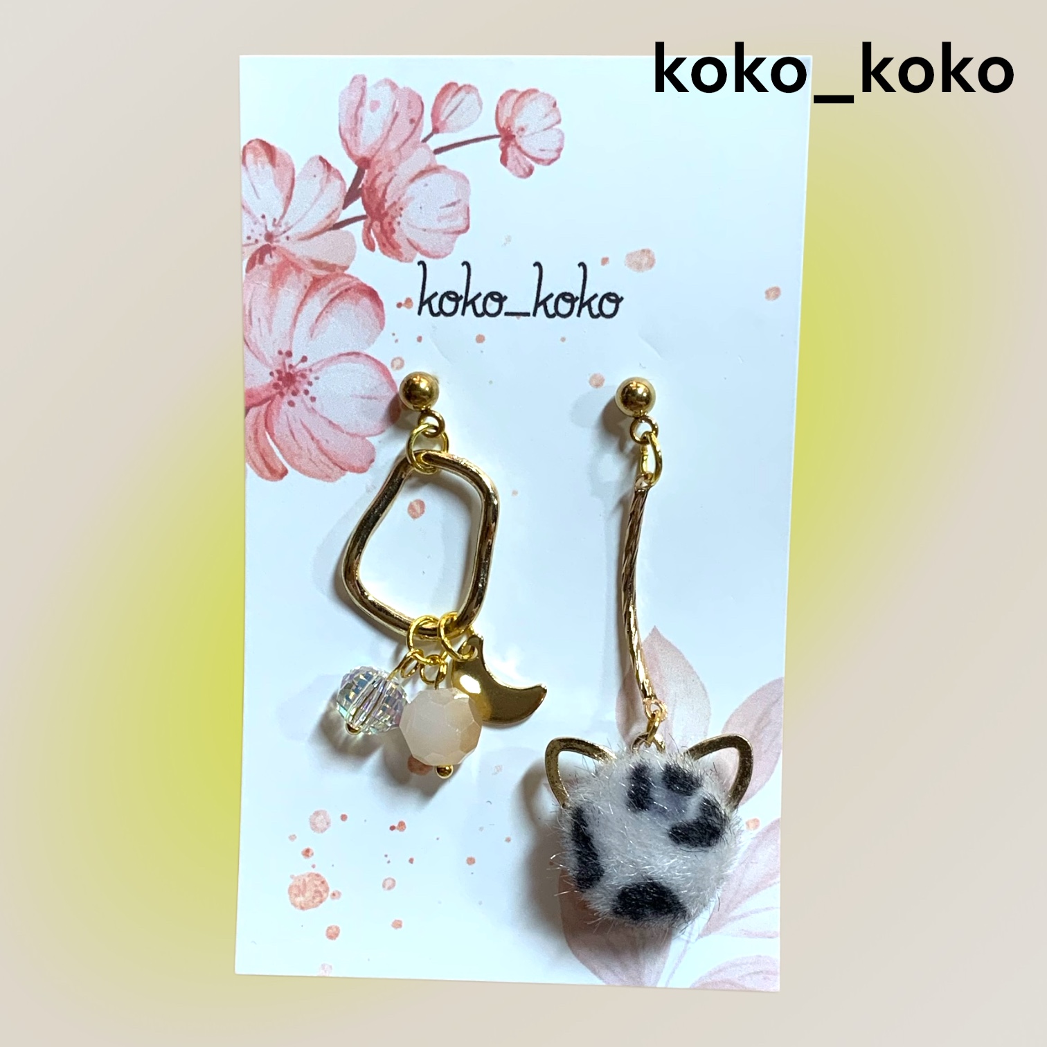 ピアス ゴールド もふもふネコちゃん×三日月 ブラック