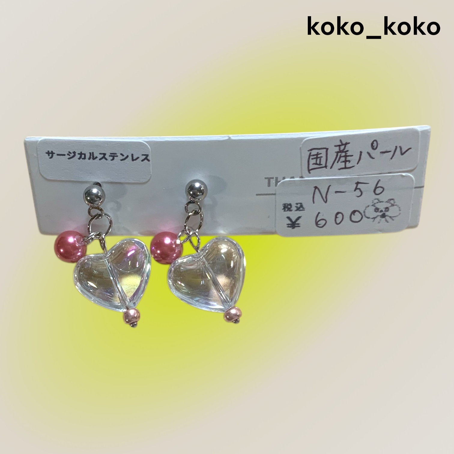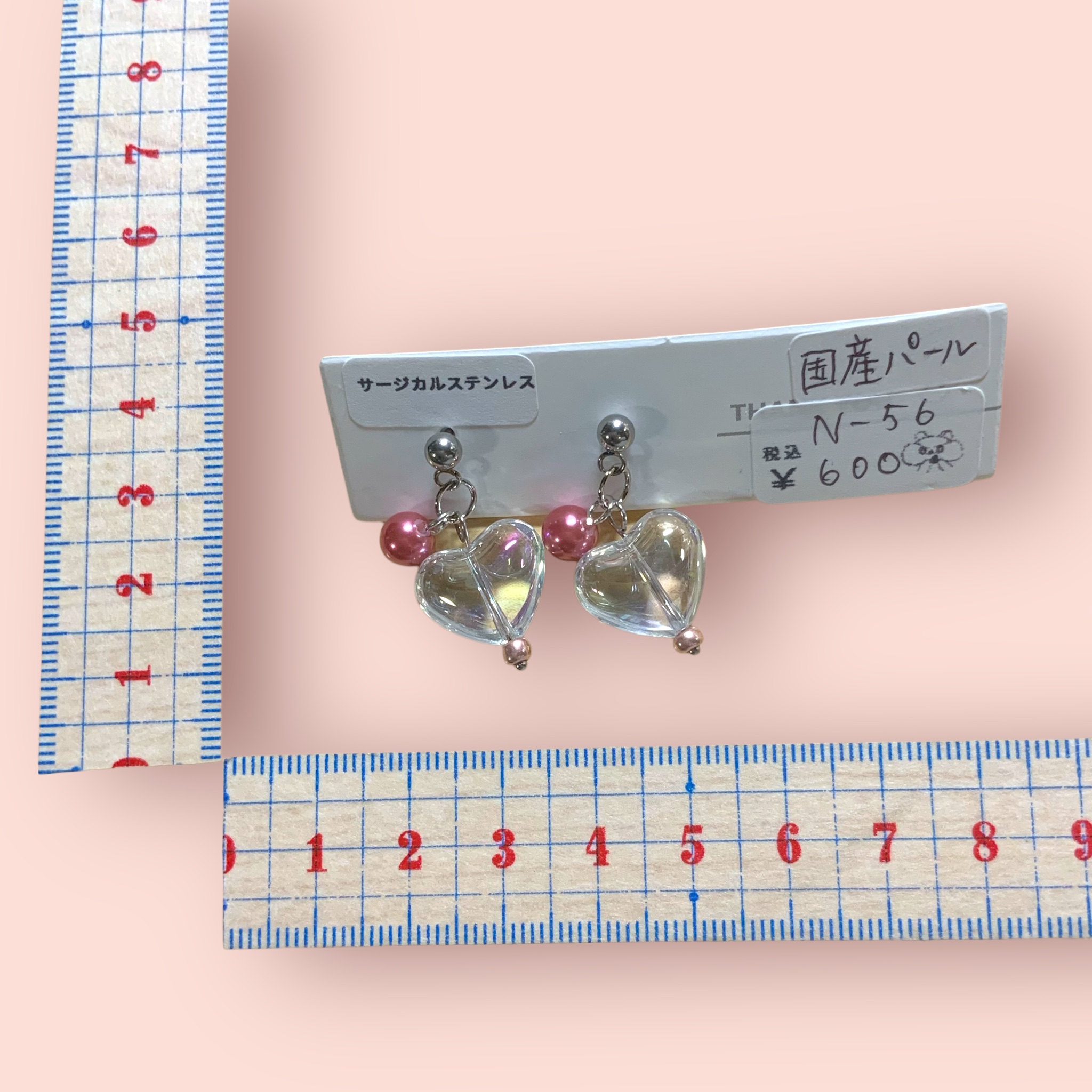 ピアス チュルルンガラスハート×国産パール