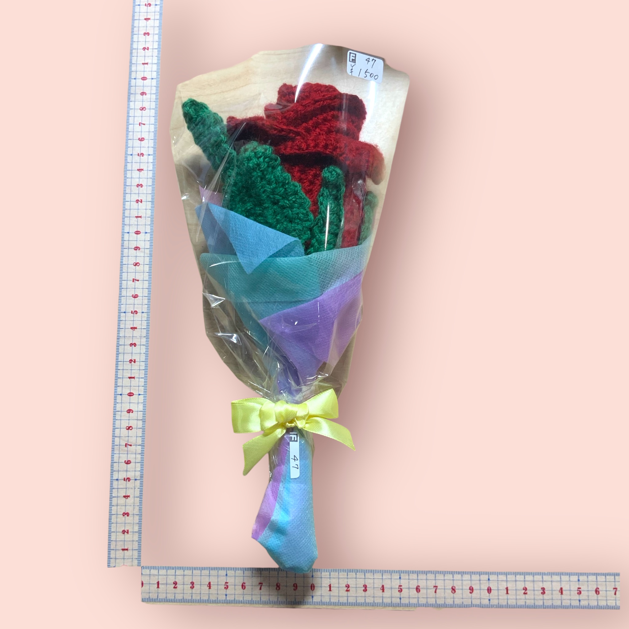 編みフラワーブーケ 赤バラ大1本 ブーケ