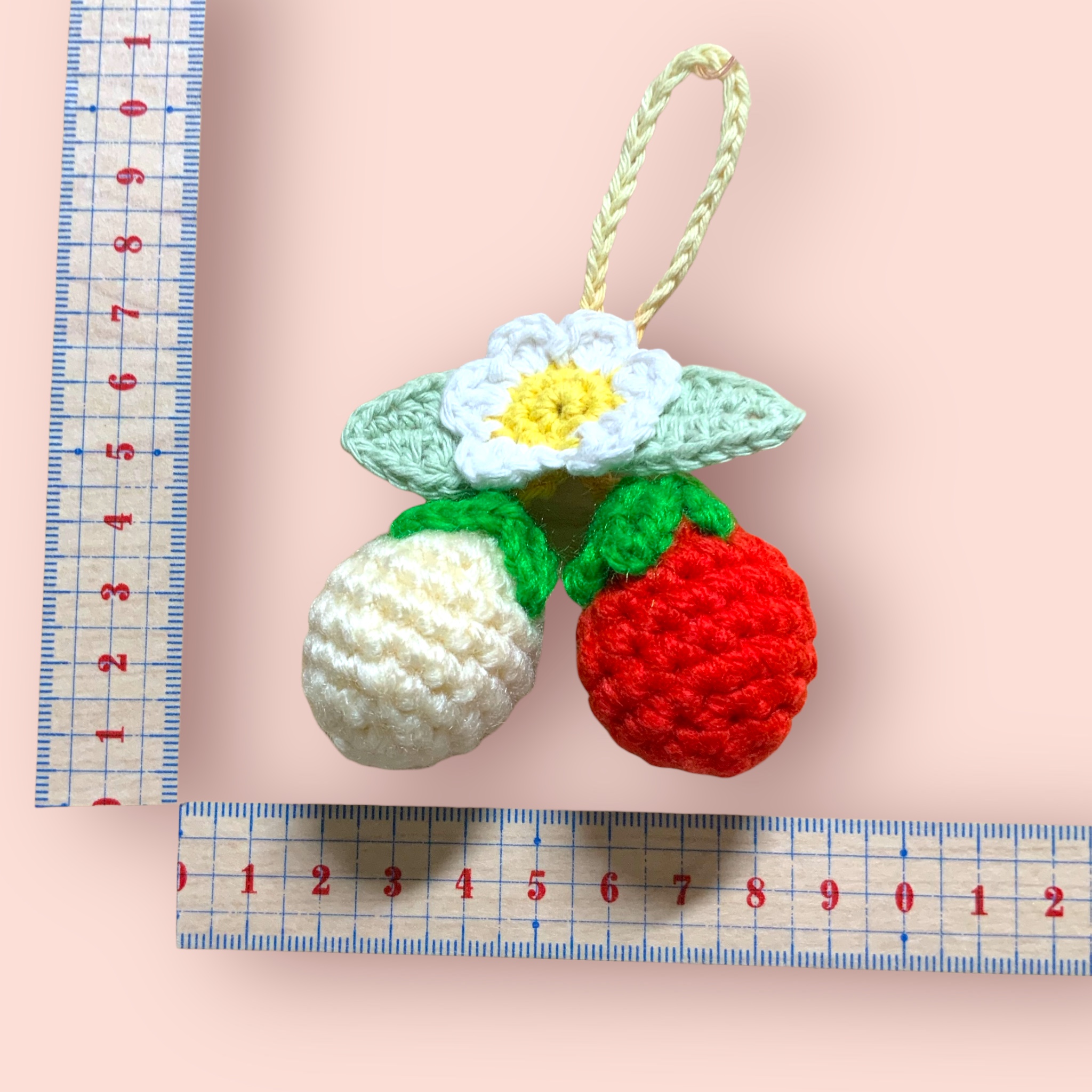 キーホルダー いちご×お花 赤×白