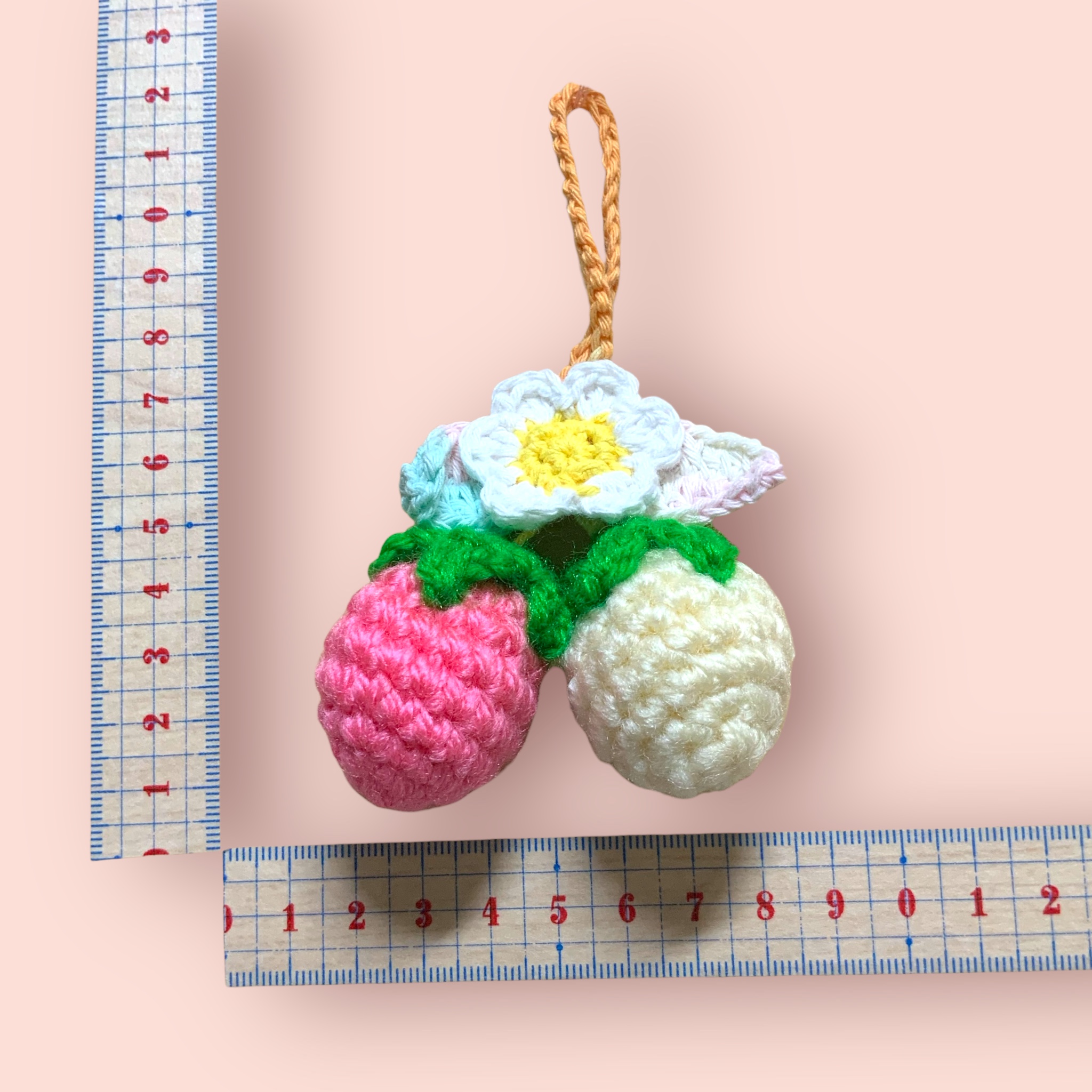 キーホルダー いちご×お花 ピンク×白