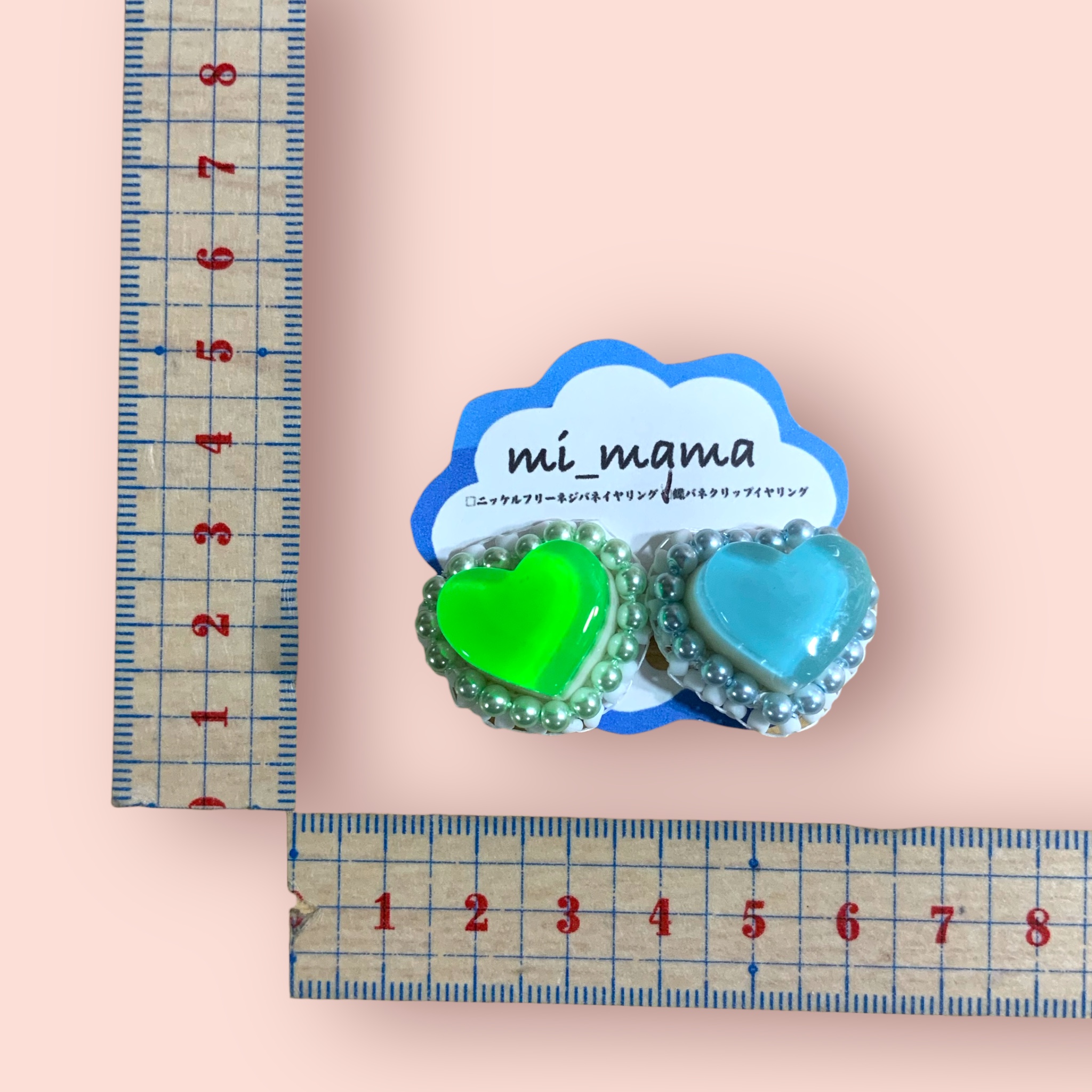 イヤリング ハートアシメ&ビーズ刺繍