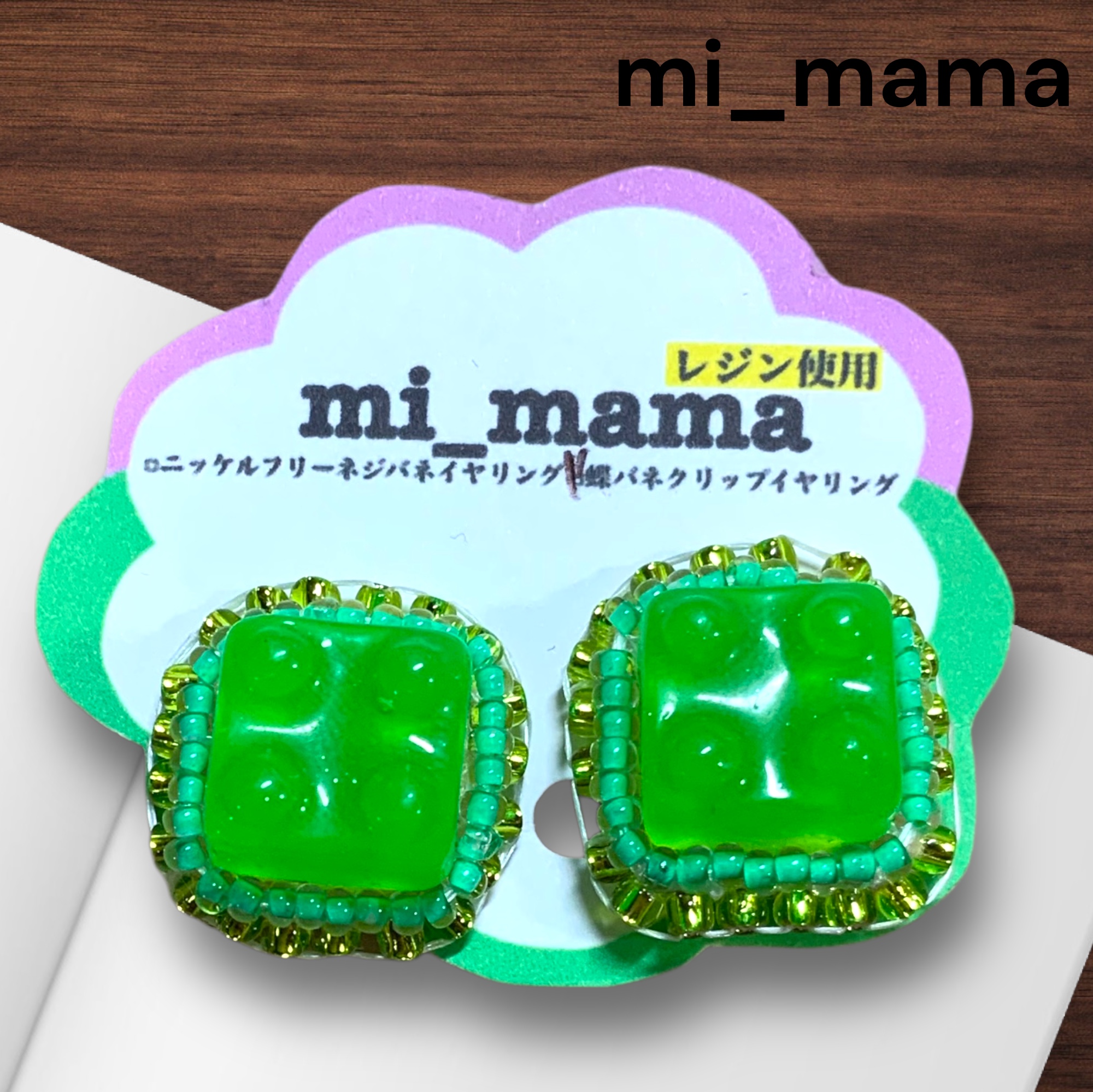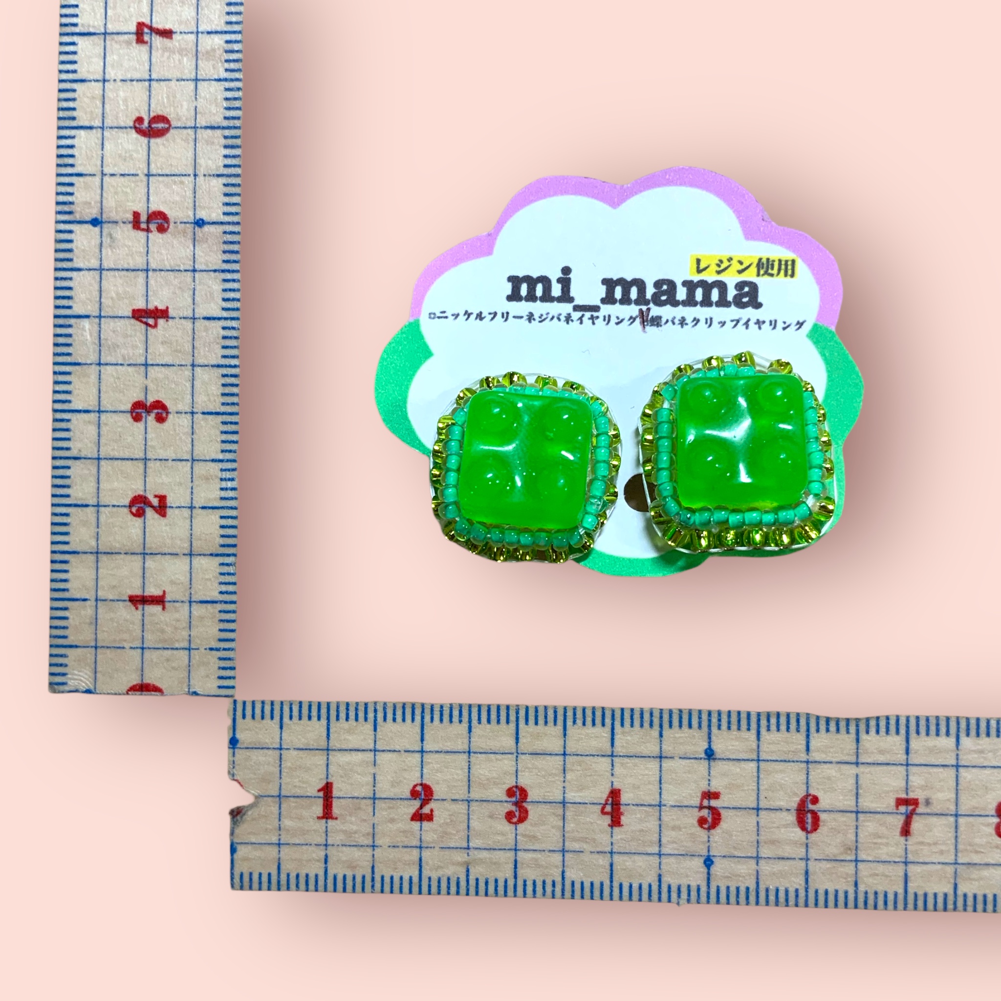 イヤリング ブロック グリーン