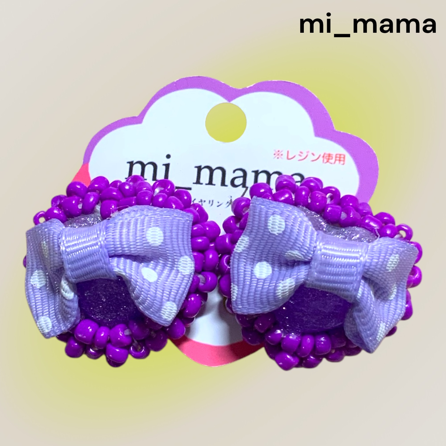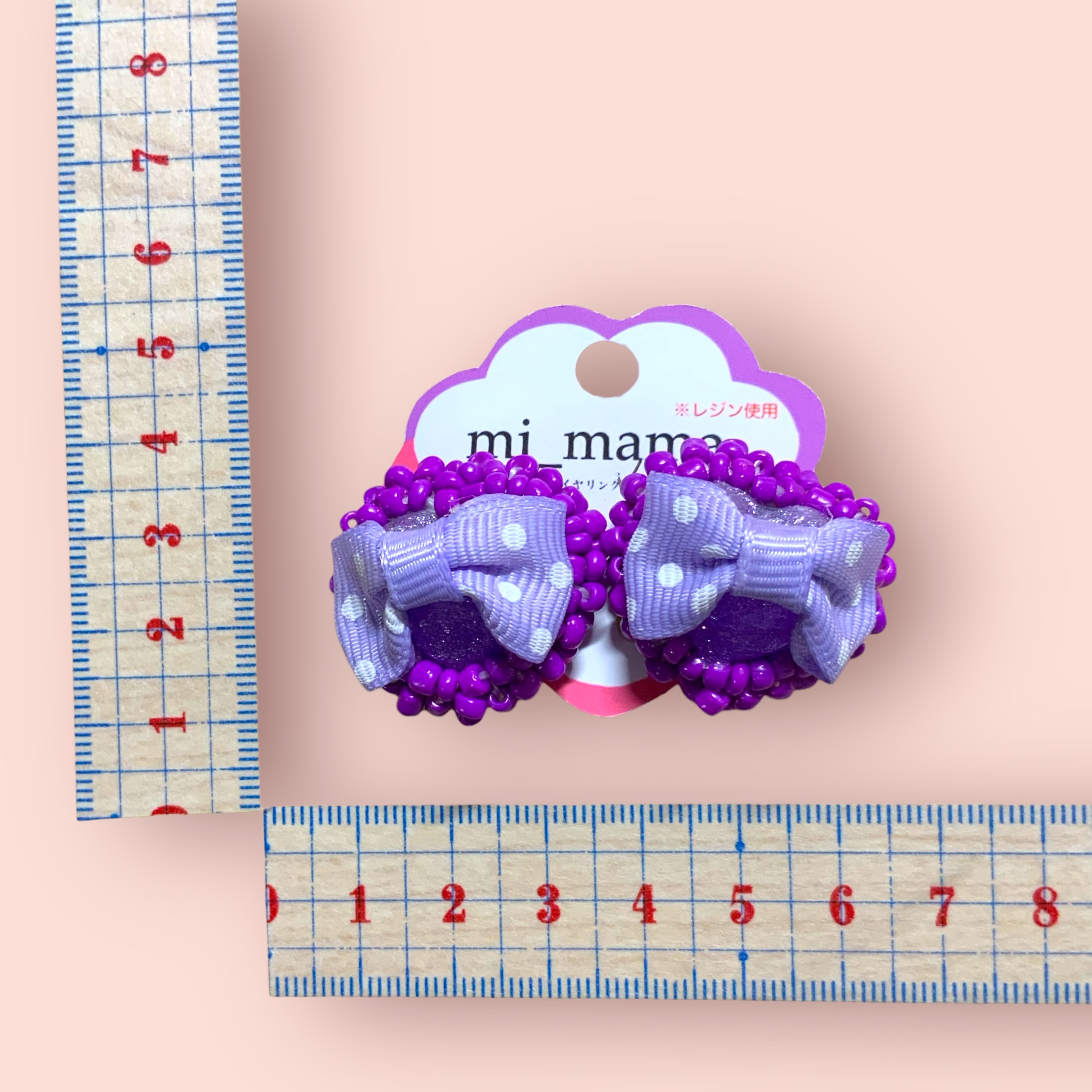 イヤリング ハートリボン ビーズ刺繍