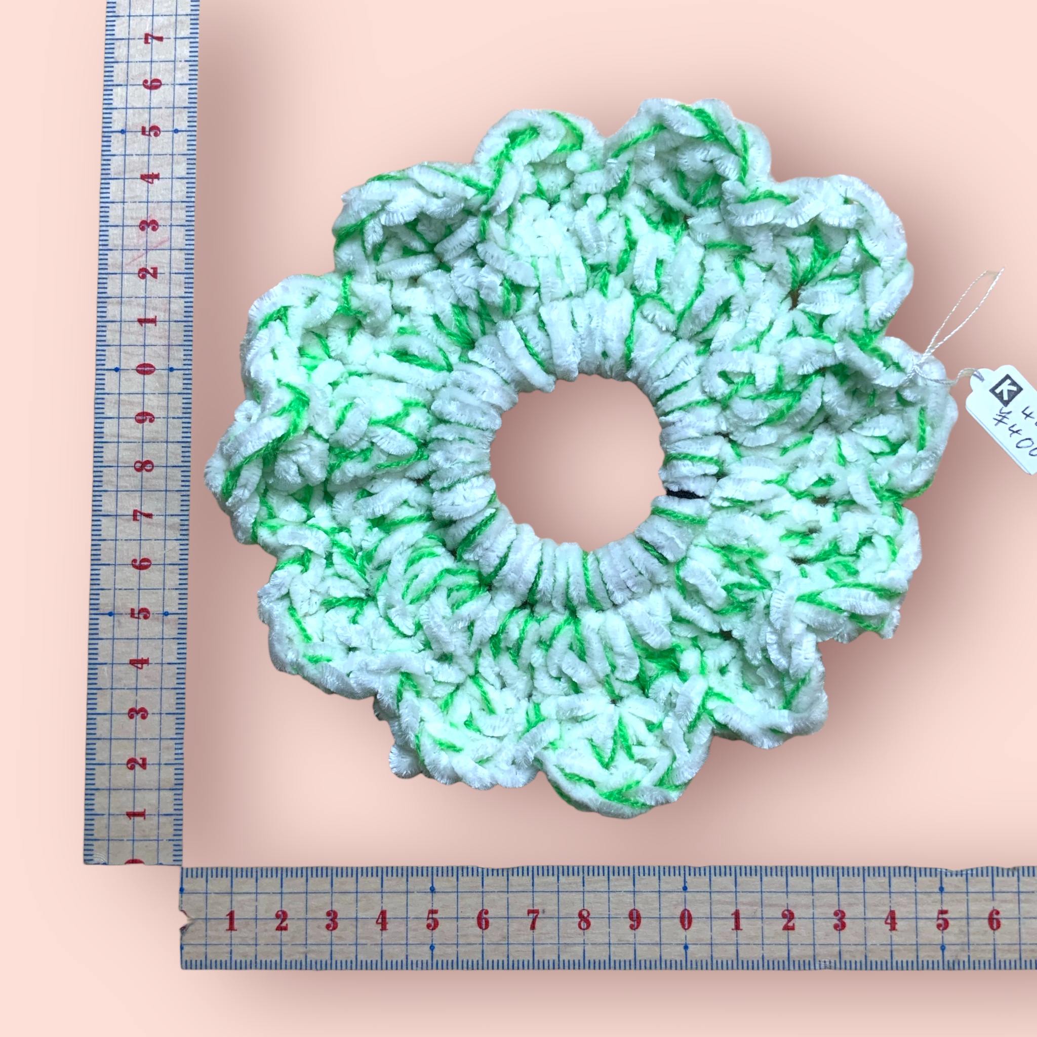 編み編みシュシュ クリスマスカラー 白×グリーン