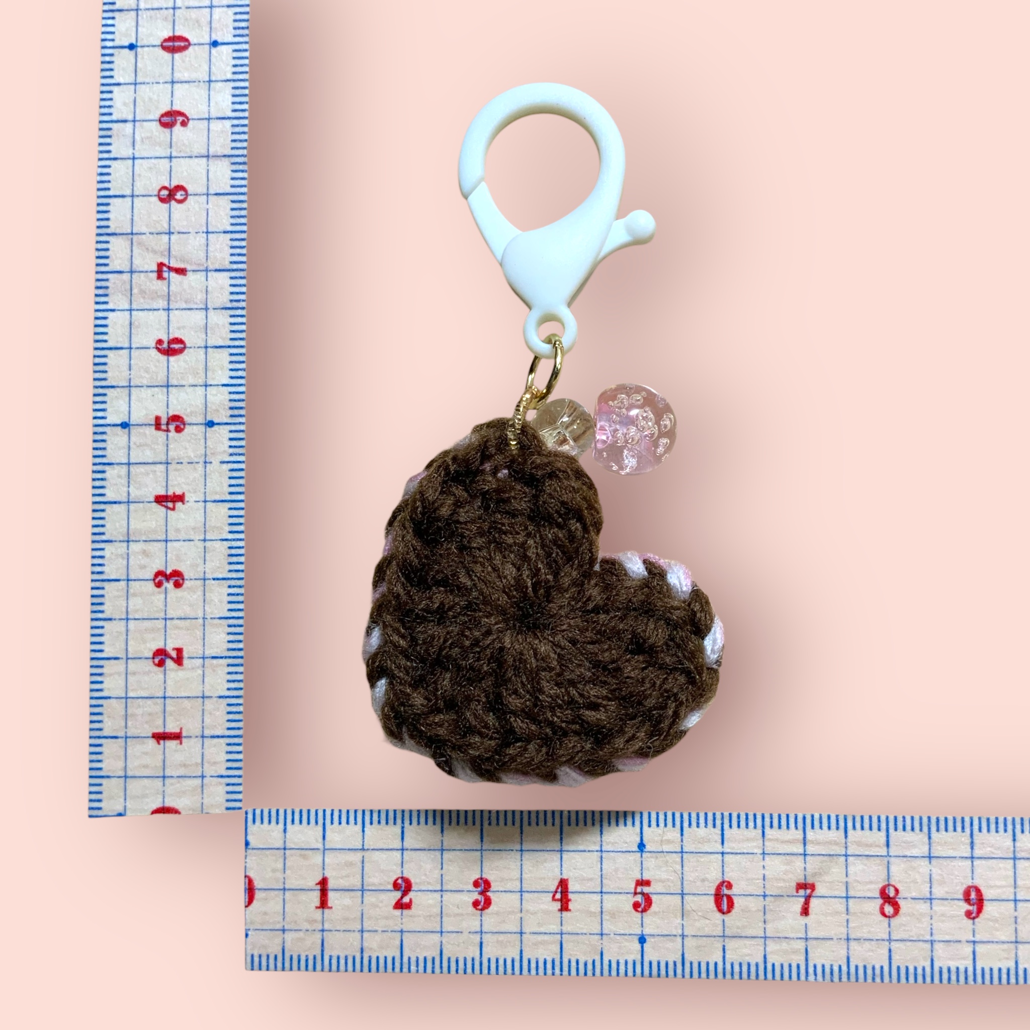 キーホルダー ハート ライトピンク×ブラウン