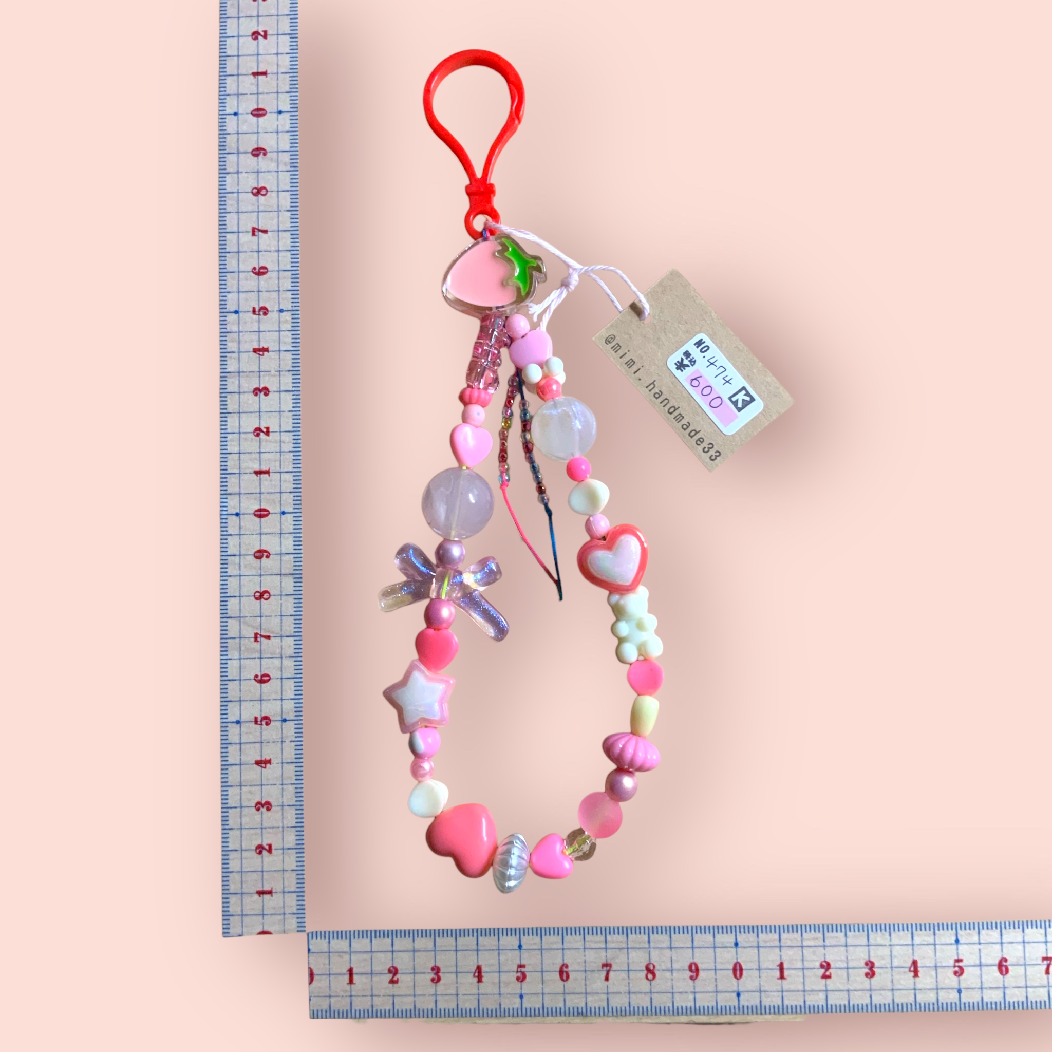 ストラップ   ビーズ  いちご   ピンク