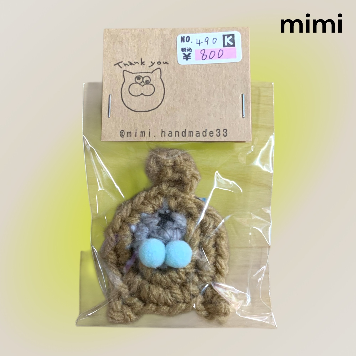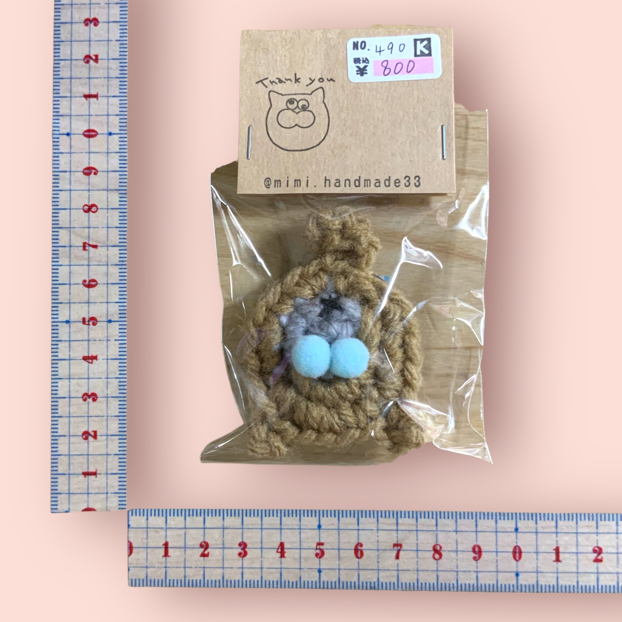 ブローチ にゃん玉 ブラウン×グレー 水色たまたま