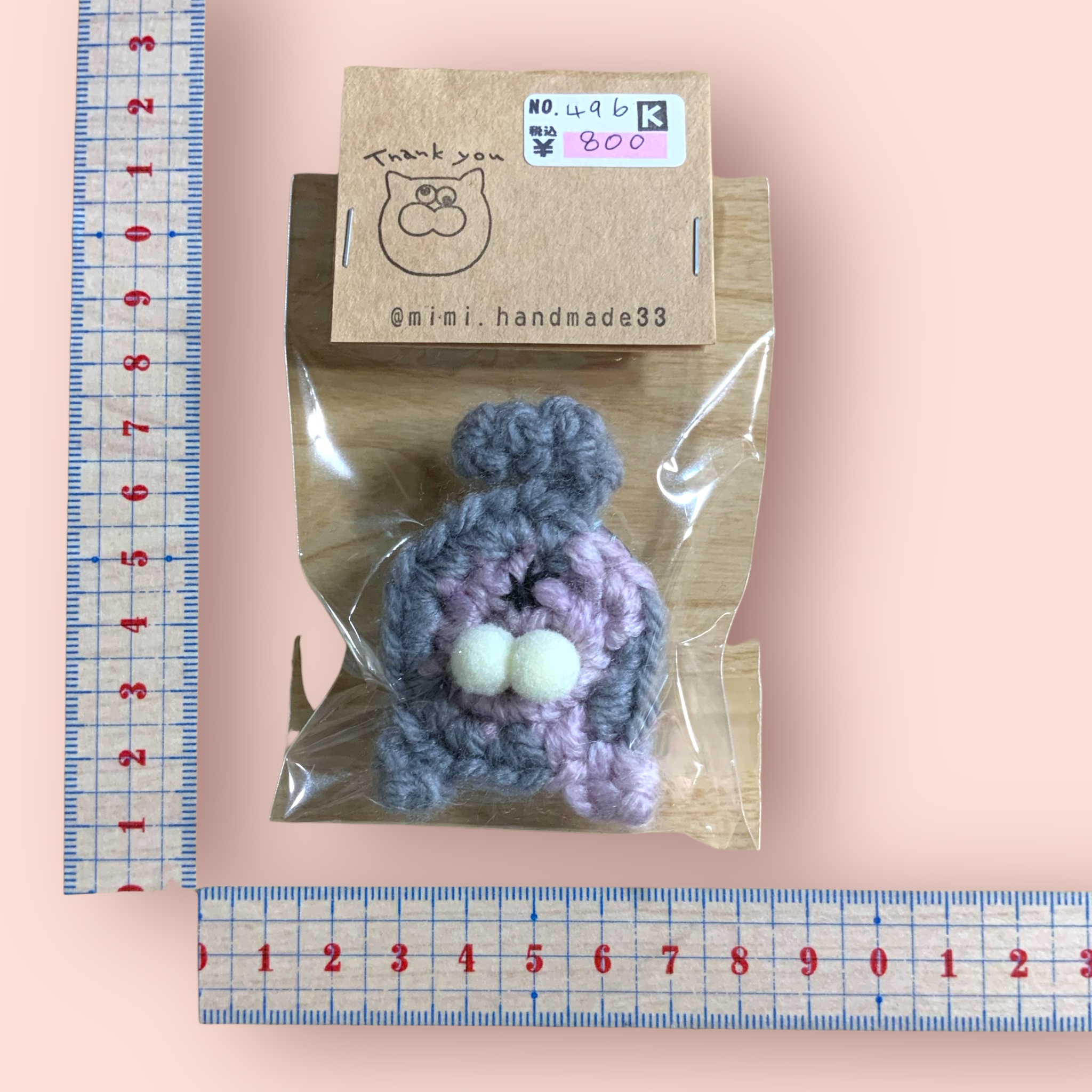 ブローチ にゃん玉 グレー×ピンク オフホワイトたまたま