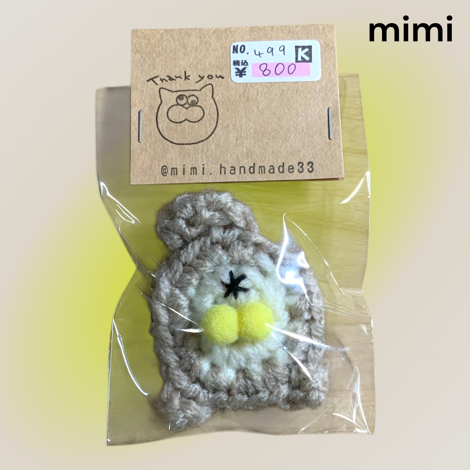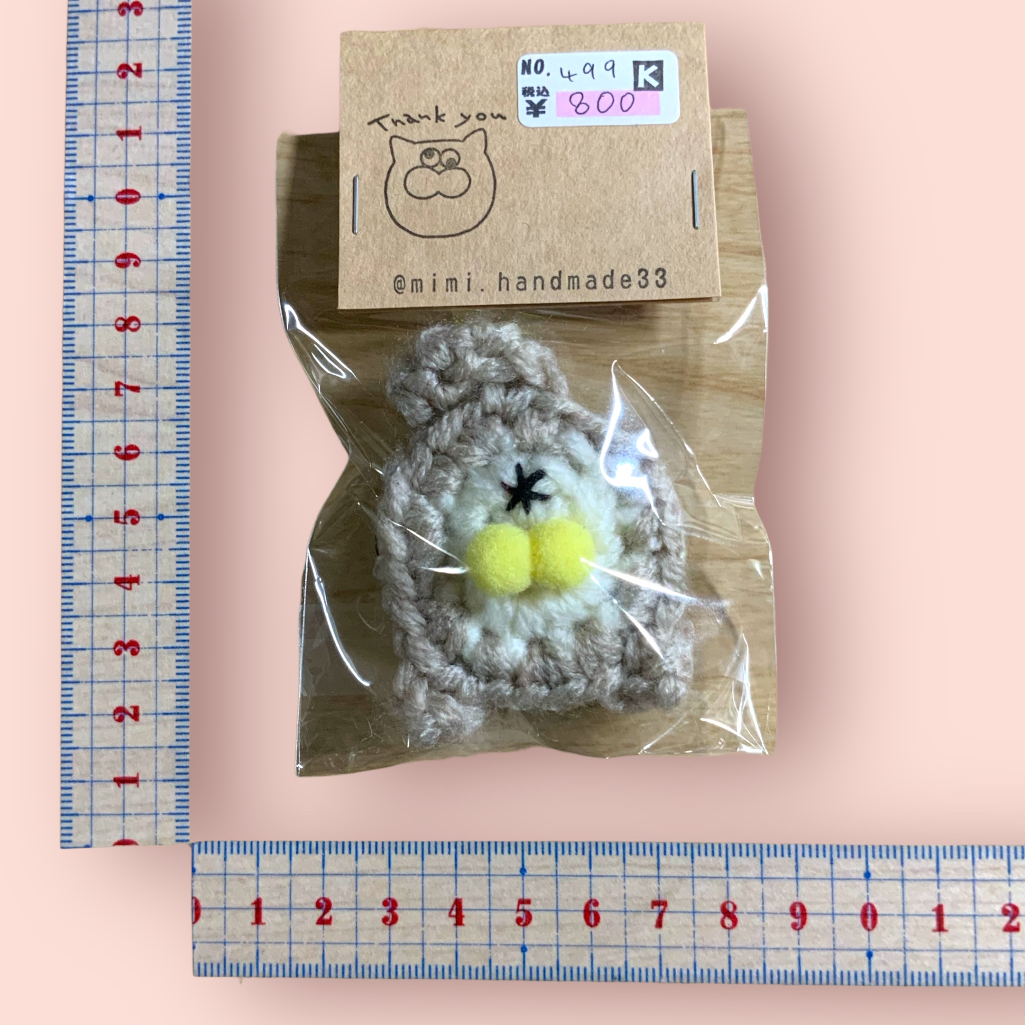ブローチ にゃん玉 ベージュ×ホワイト 黄色たまたま