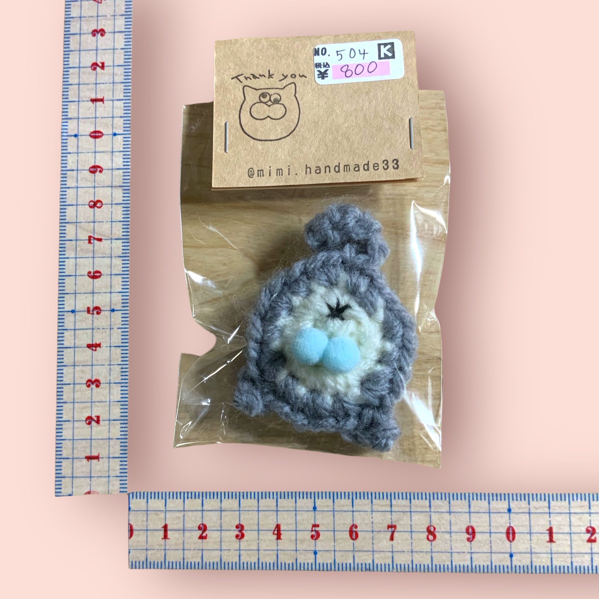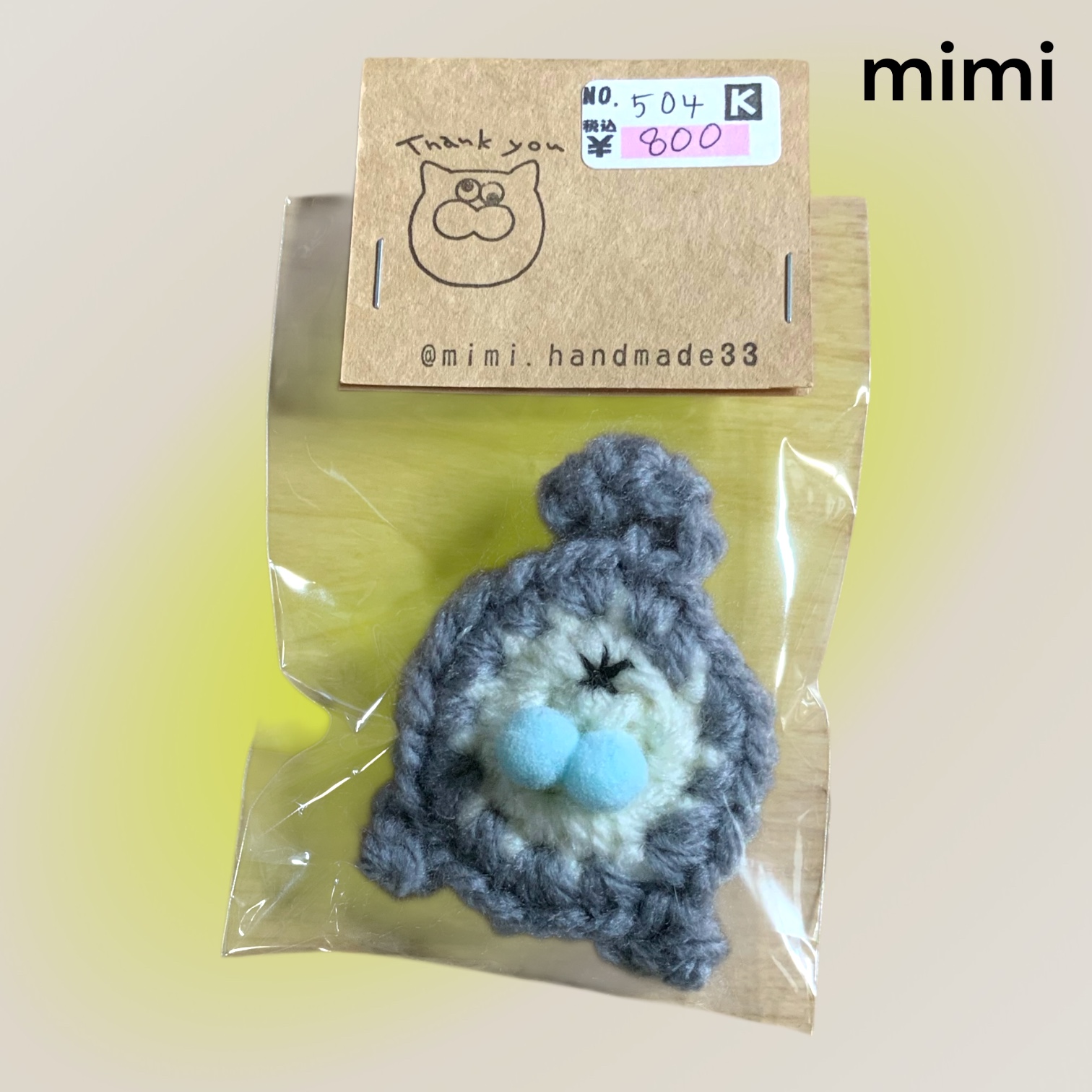 ブローチ にゃん玉 グレー×ホワイト 水色たまたま