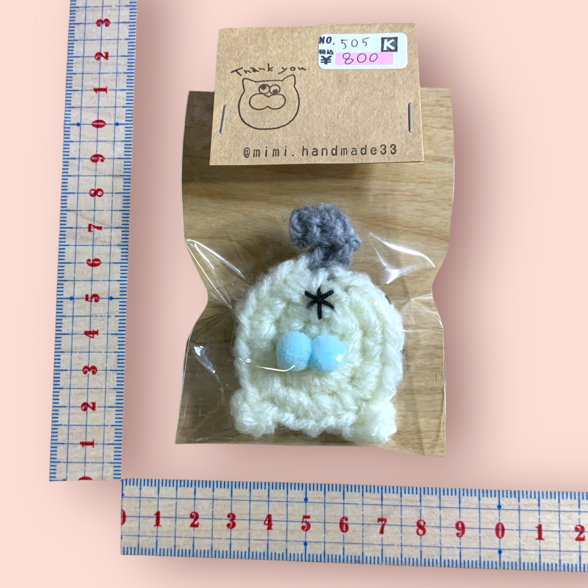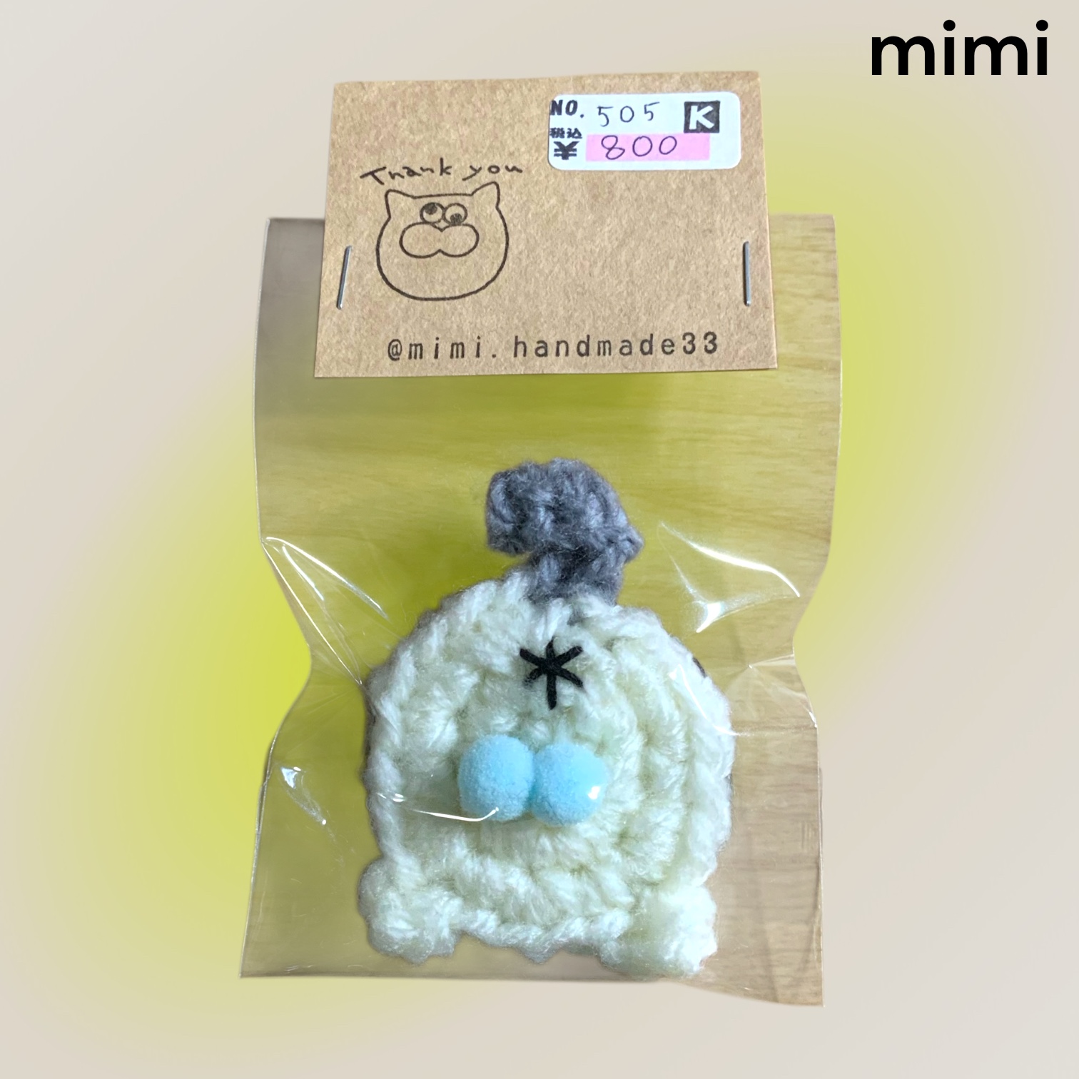 ブローチ にゃん玉 ホワイト×グレー 水色たまたま