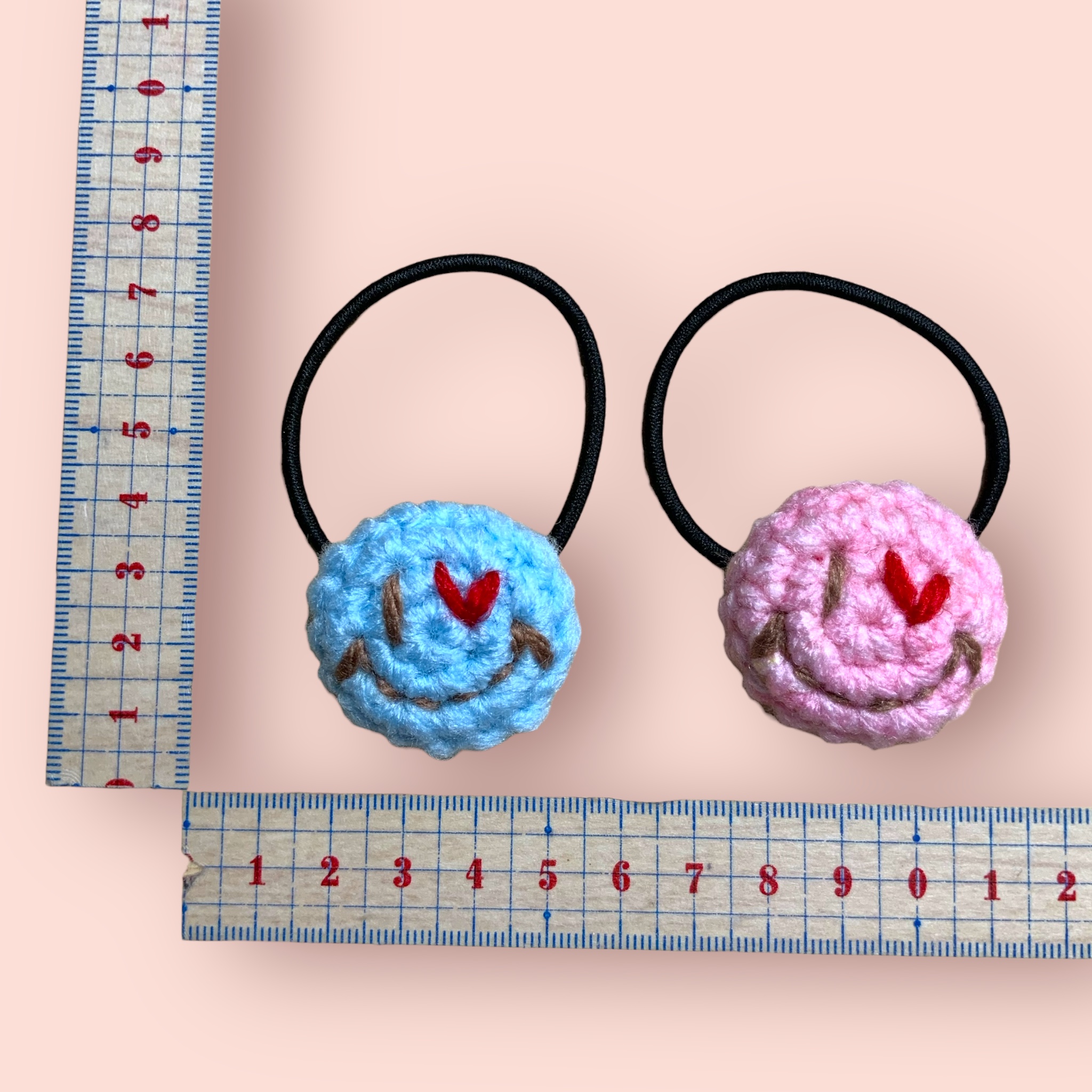 ツインヘアゴム 編みニコちゃん 水色×ピンク