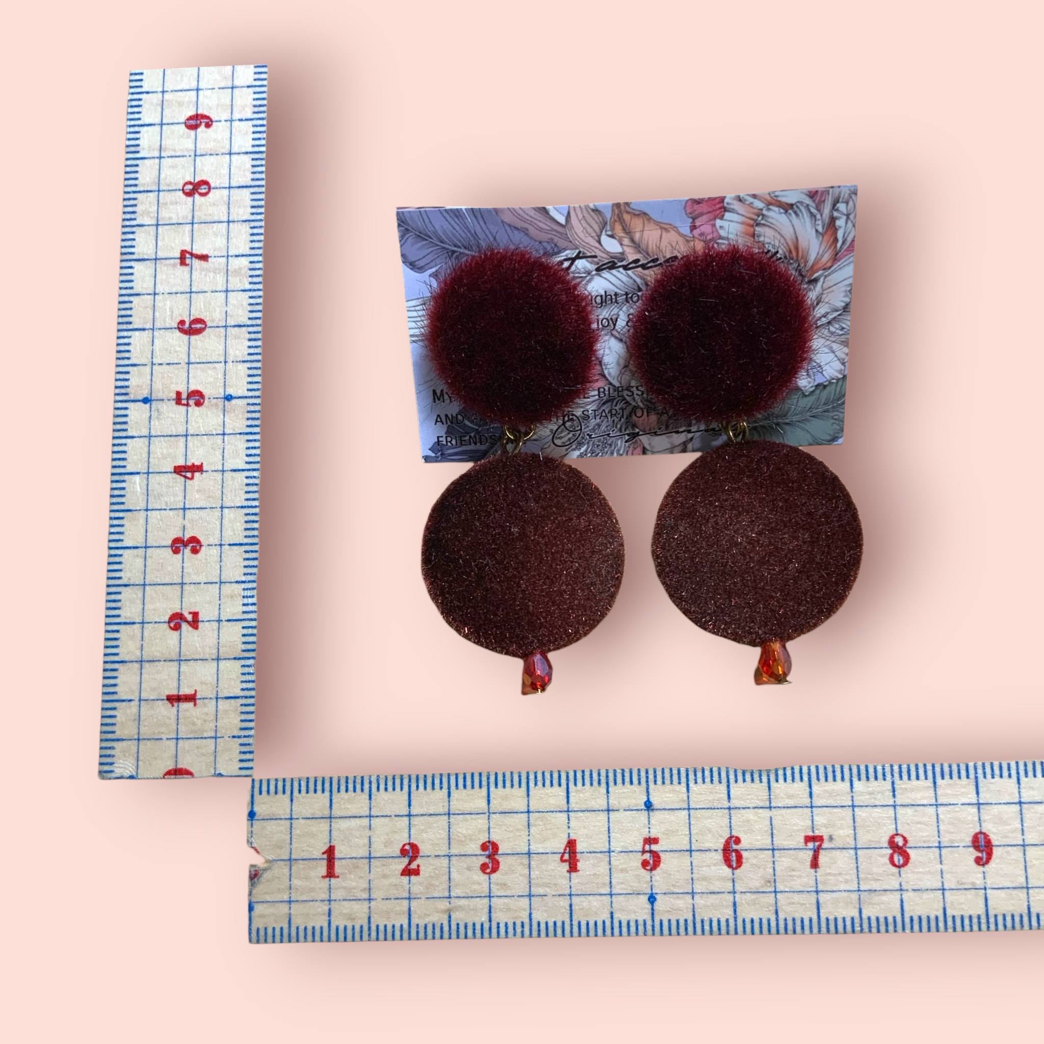 ピアス ワインレッド ベルベット×ファー