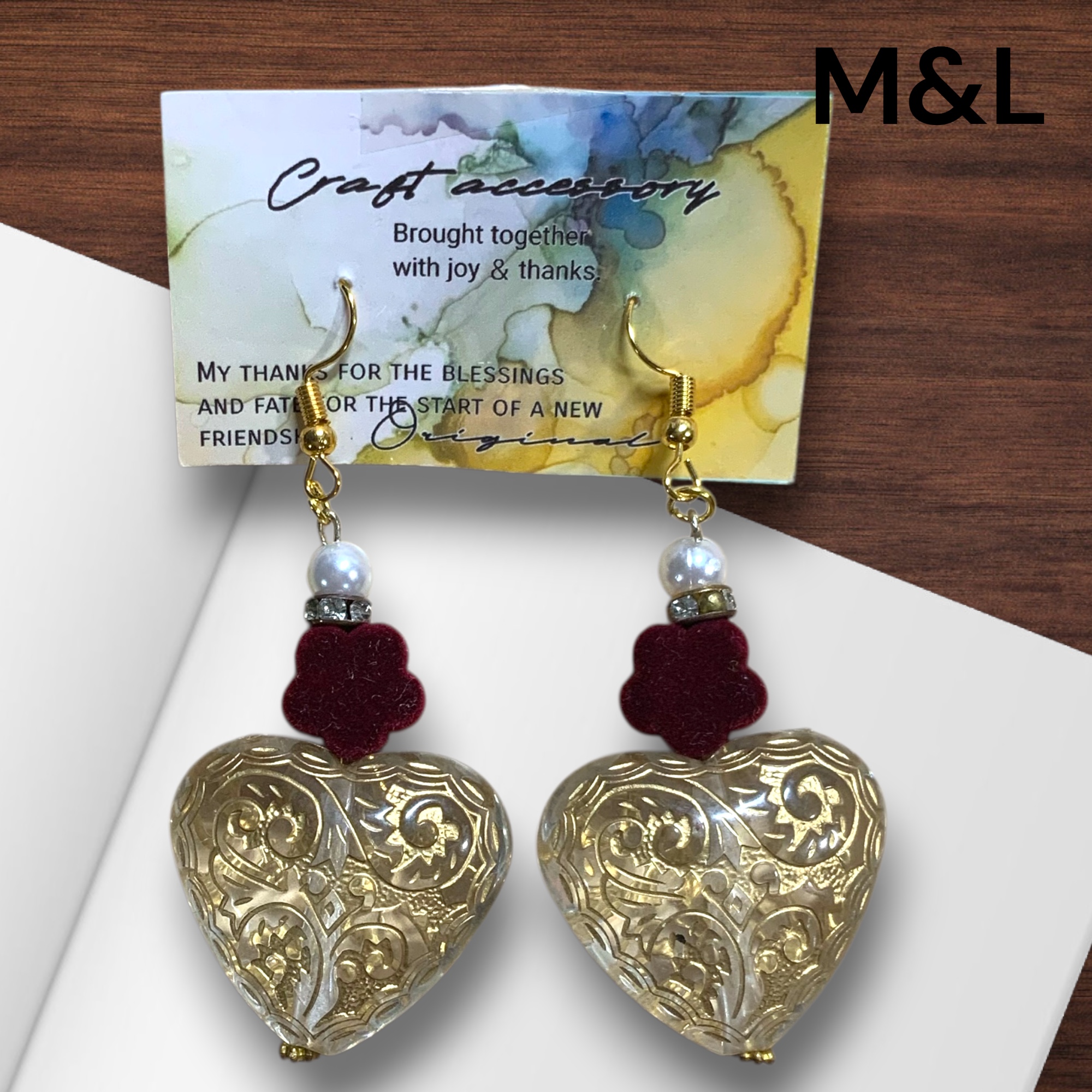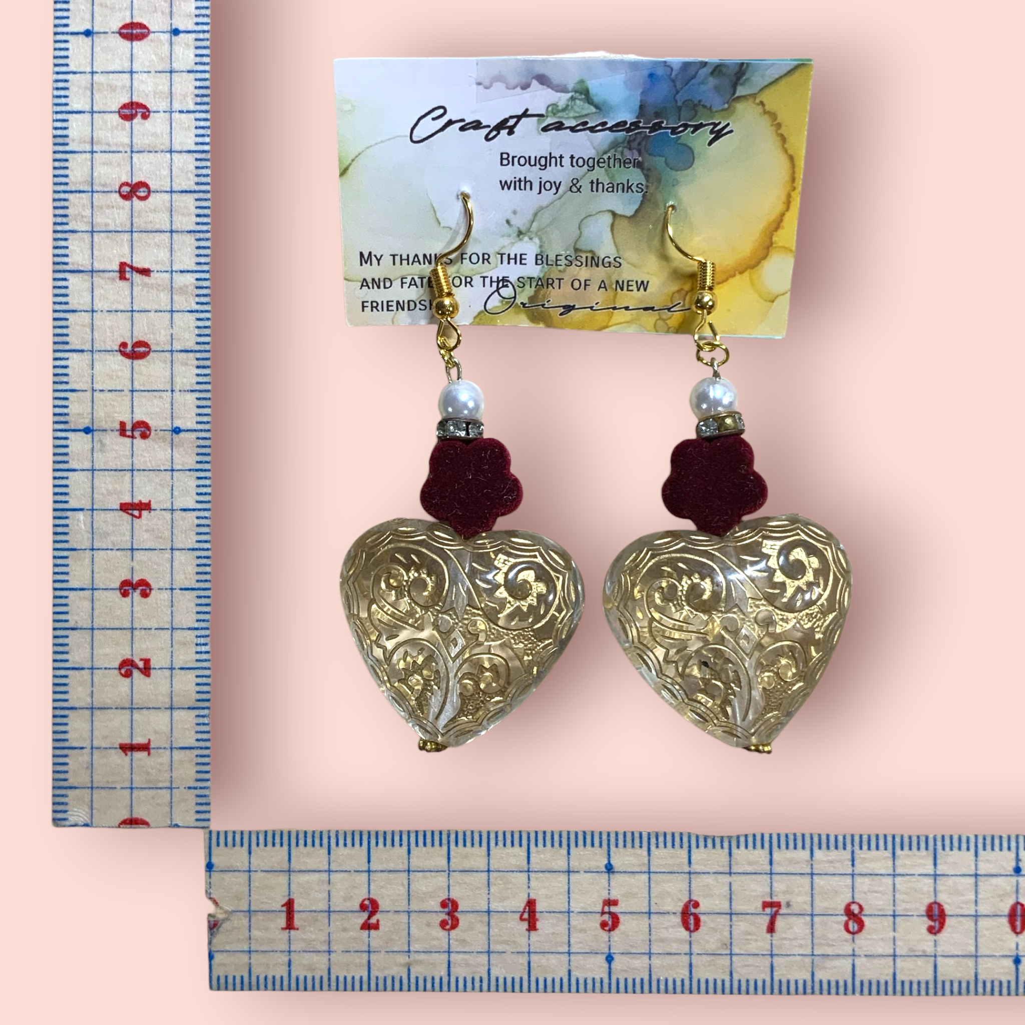 ピアス ベルベット素材ビーズ×ハート模様ビーズ