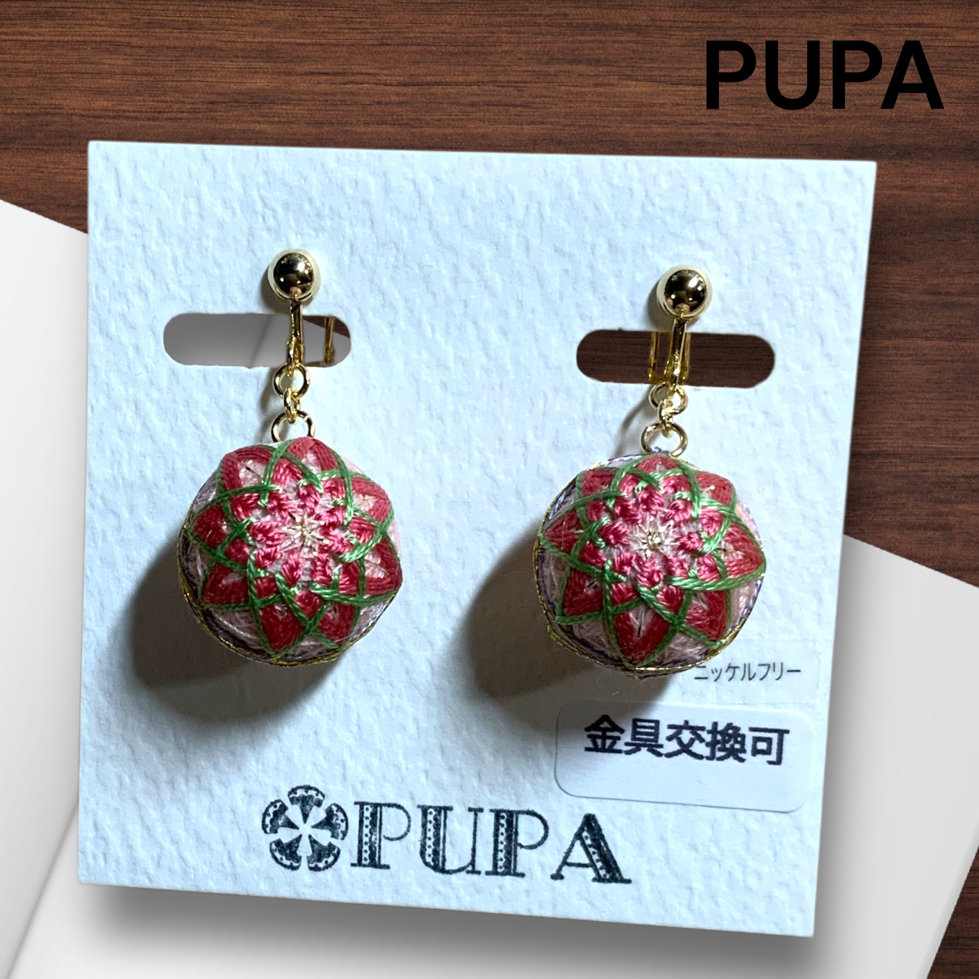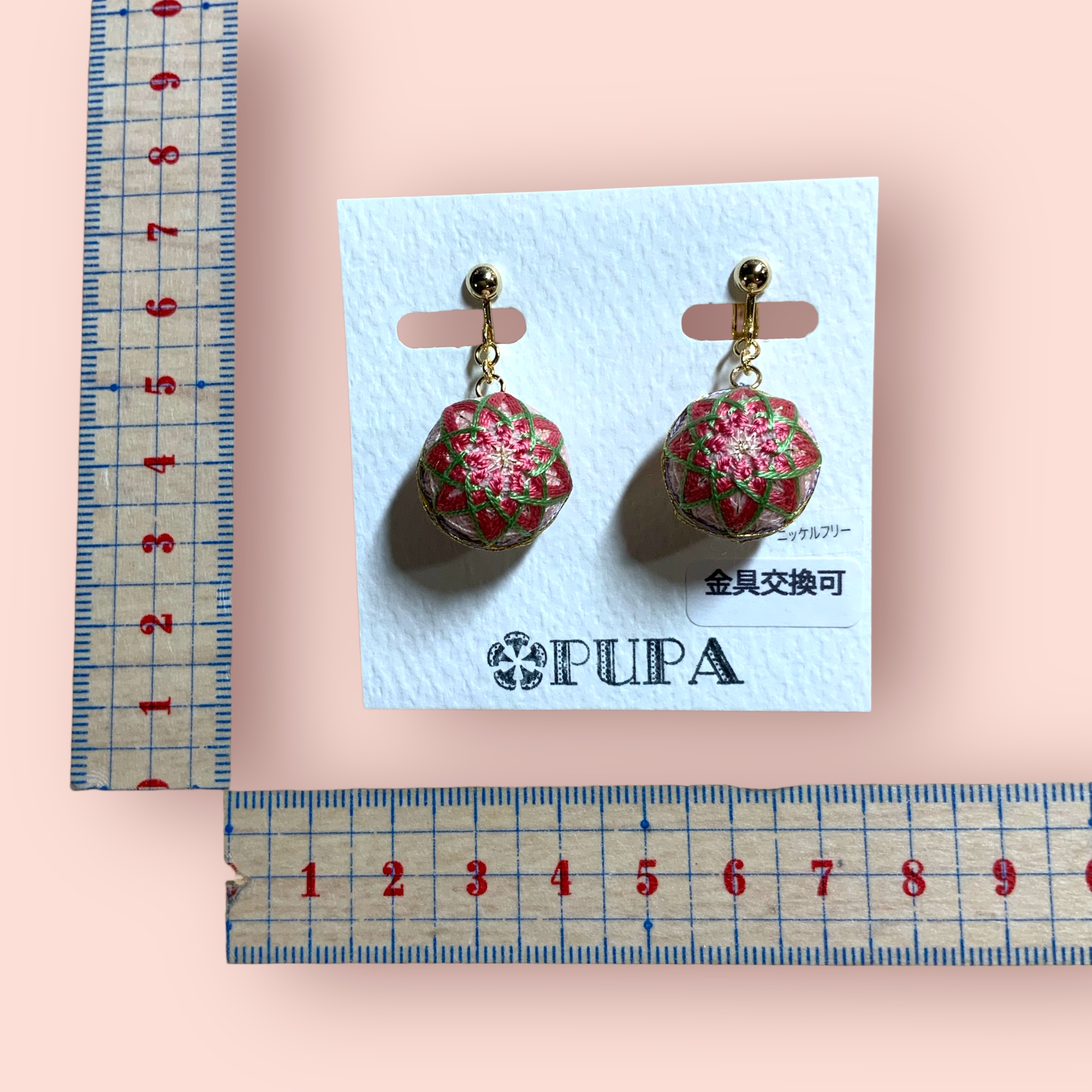 イヤリング  手まり  二ツ菊   桜餅カラー