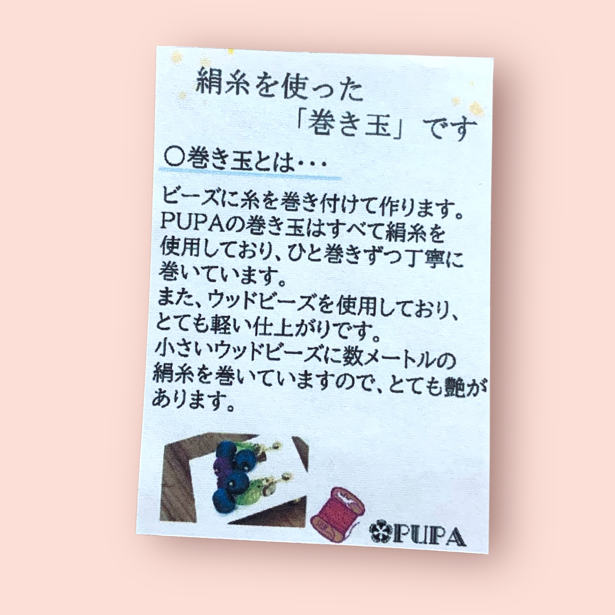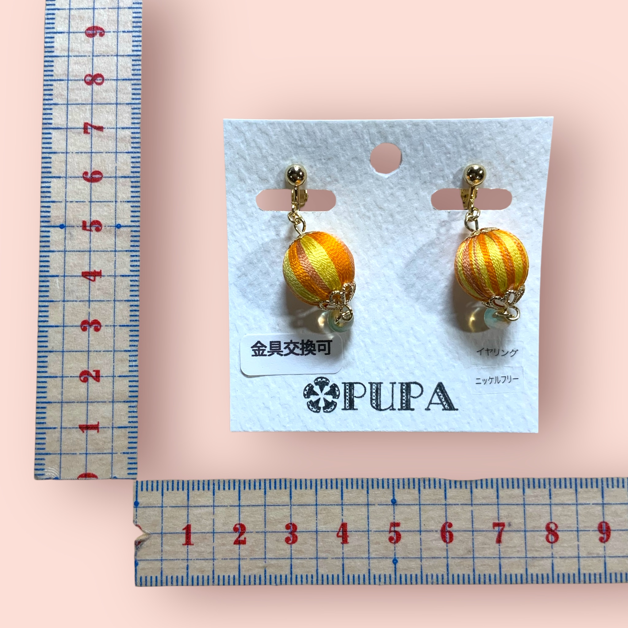 イヤリング 巻き玉 黄色×オレンジ マーブル模様