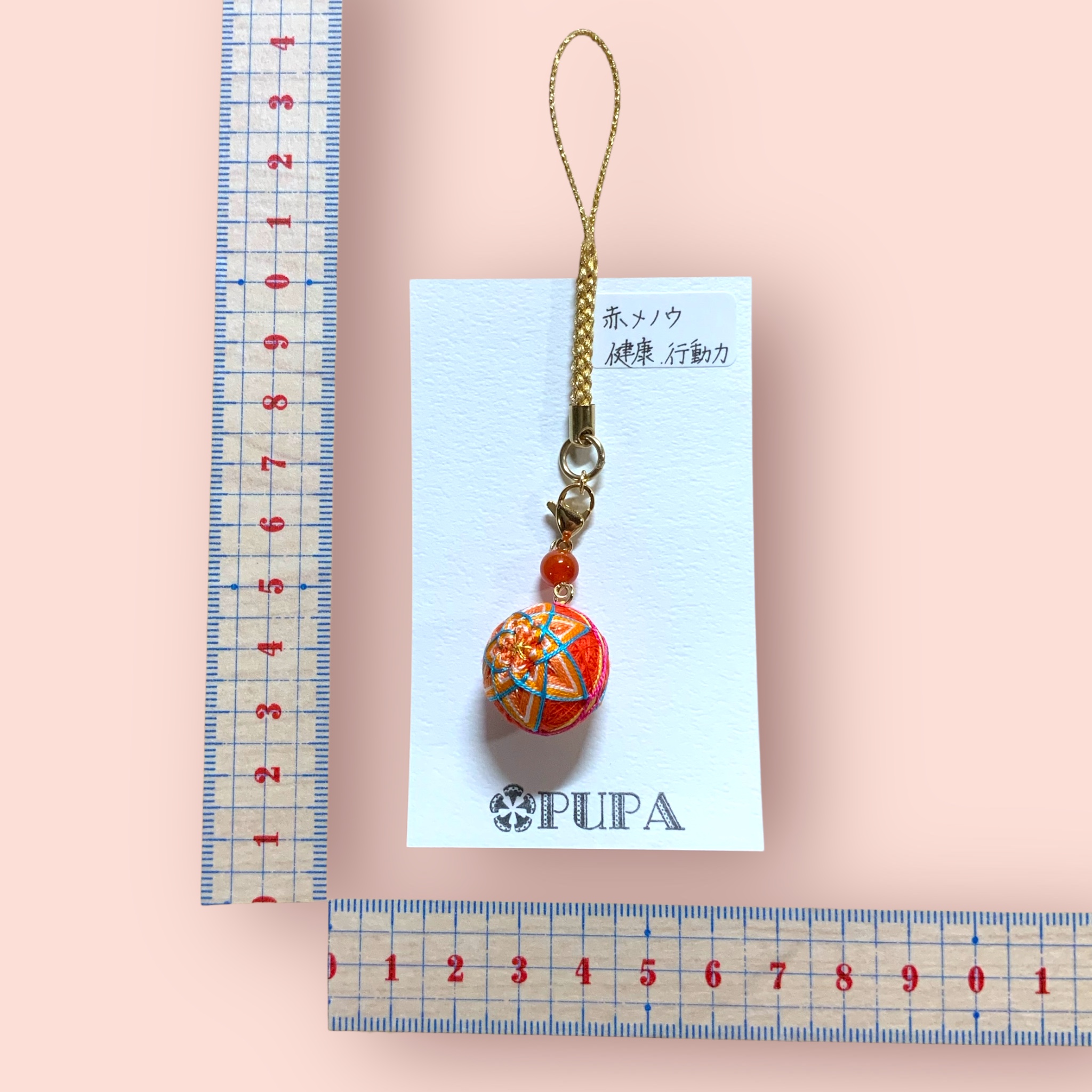 寝付けストラップ 二ツ菊 オレンジ 赤メノウ