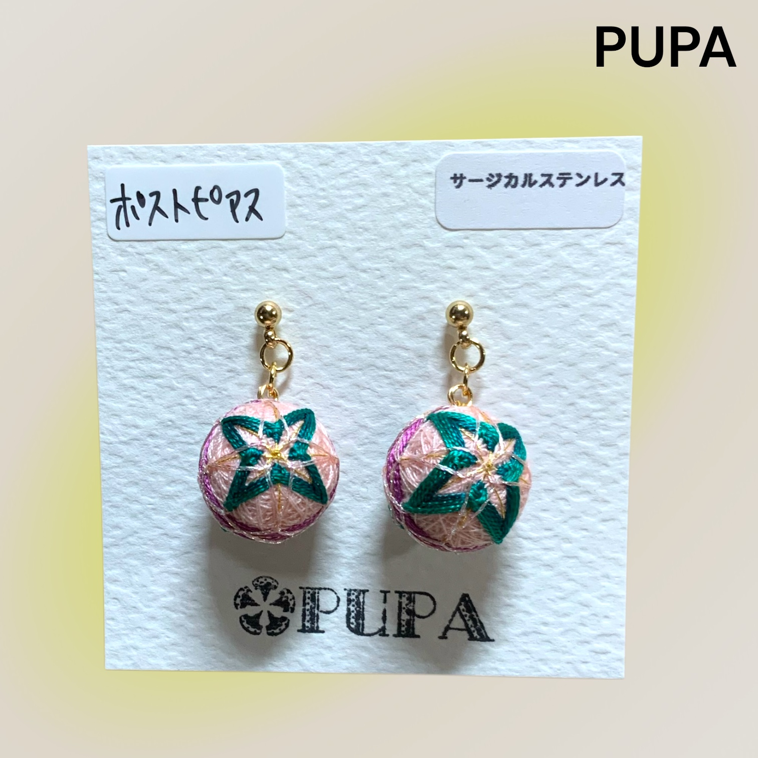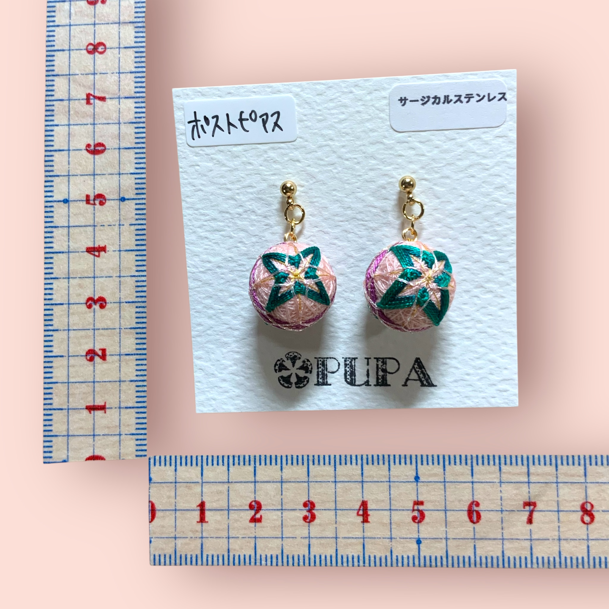 ピアス ミニ手毬 ピンク